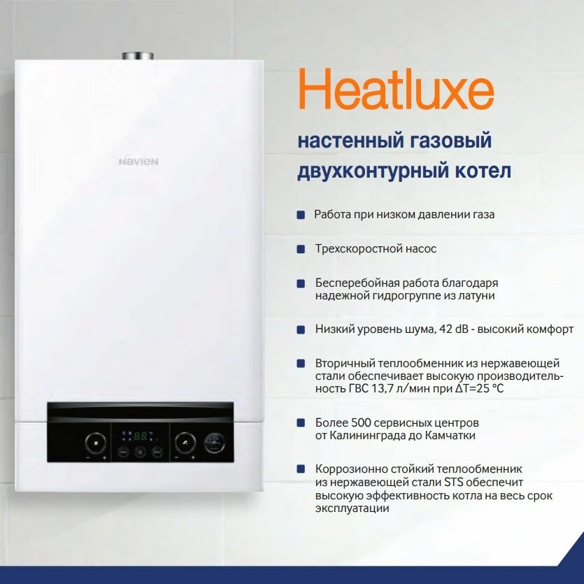 Котел настенный газовый конвекционный 10 кВт двухконтурный Heatluxe NGB210 Navien PNGB2100010L001