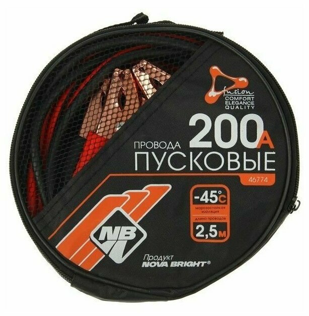 Провода пусковые Nova Bright fusion 46774, 2,5 м, 200 А, морозостойкие, сумка интересное: