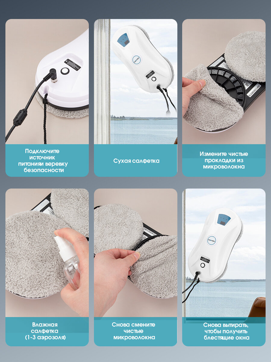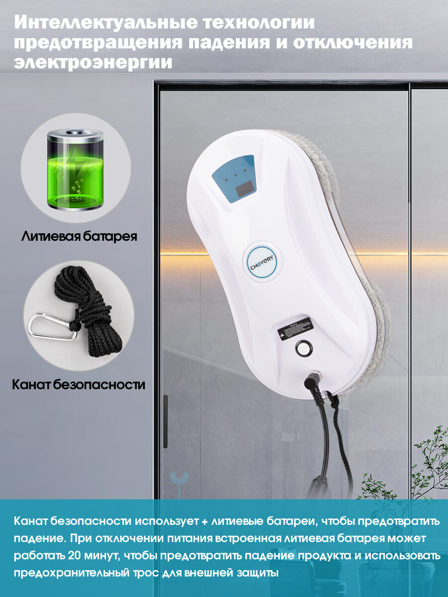 Робот-стеклоочиститель CHOVERY CL-3 Робот мойщик окон, Белый и синий интересное: