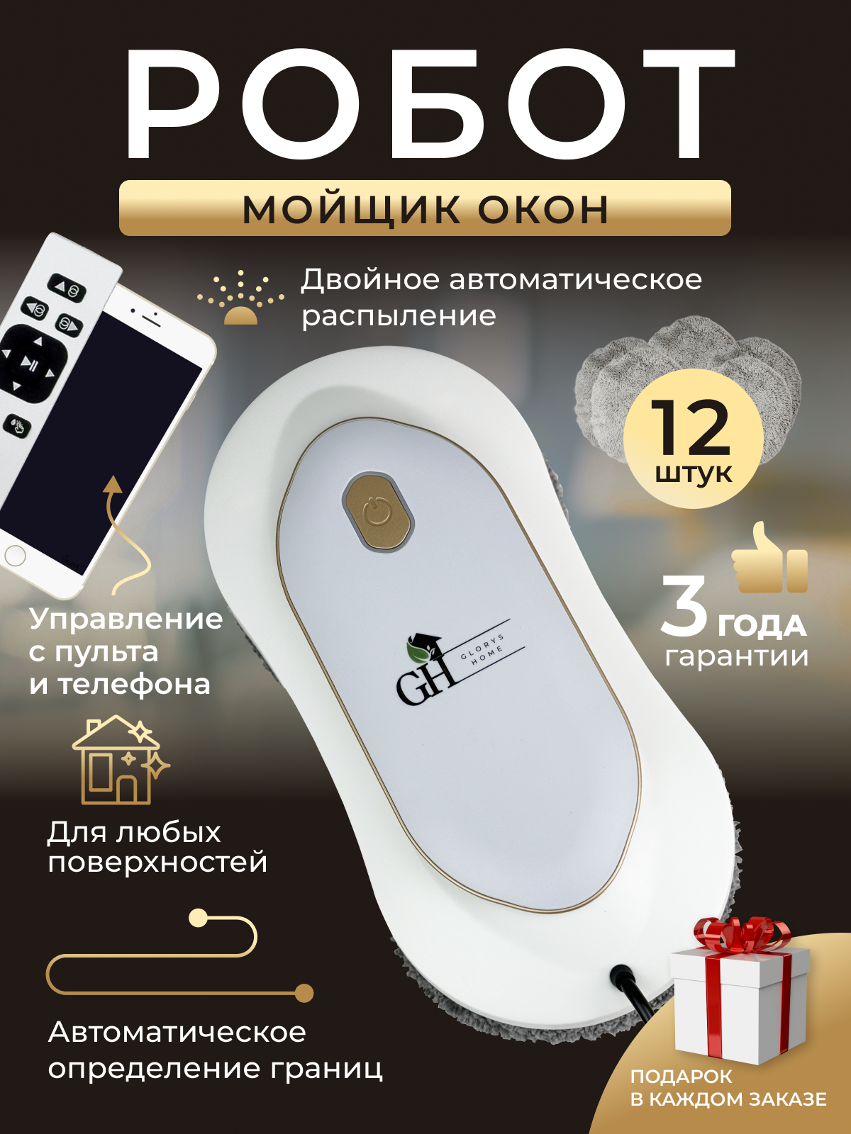 Робот-мойщик окон Glorys Home с набором салфеток
