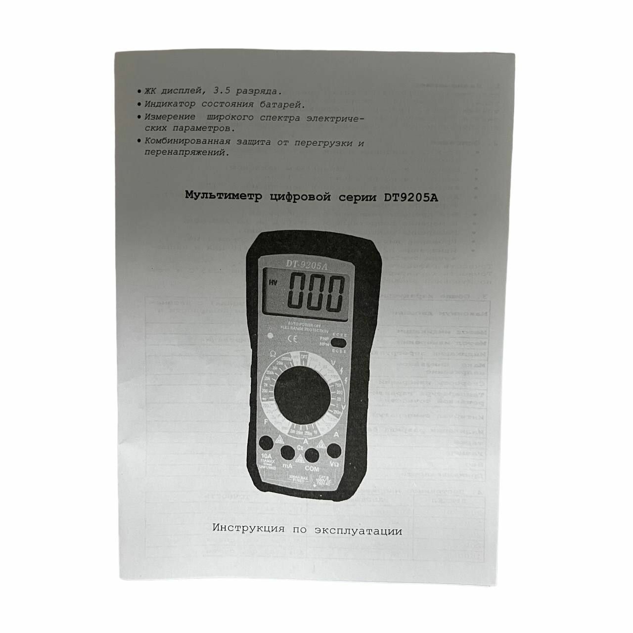 Ниже Вы можете прочитать отзывы на Мультиметр (тестер) с цифровым дисплеем DT-9205А, инструмент для ремонта проводки, ознакомится с подробными характеристиками, посмотреть интересные обзоры и фотографии на Мультиметр (тестер) с цифровым дисплеем DT-9205А, инструмент для ремонта проводки.