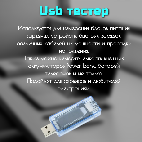 | Тип | USB-мультиметр / амперметр / вольтметр / измеритель емкости / индикатор напряжения / кабельный тестер / тестер блоков питания |