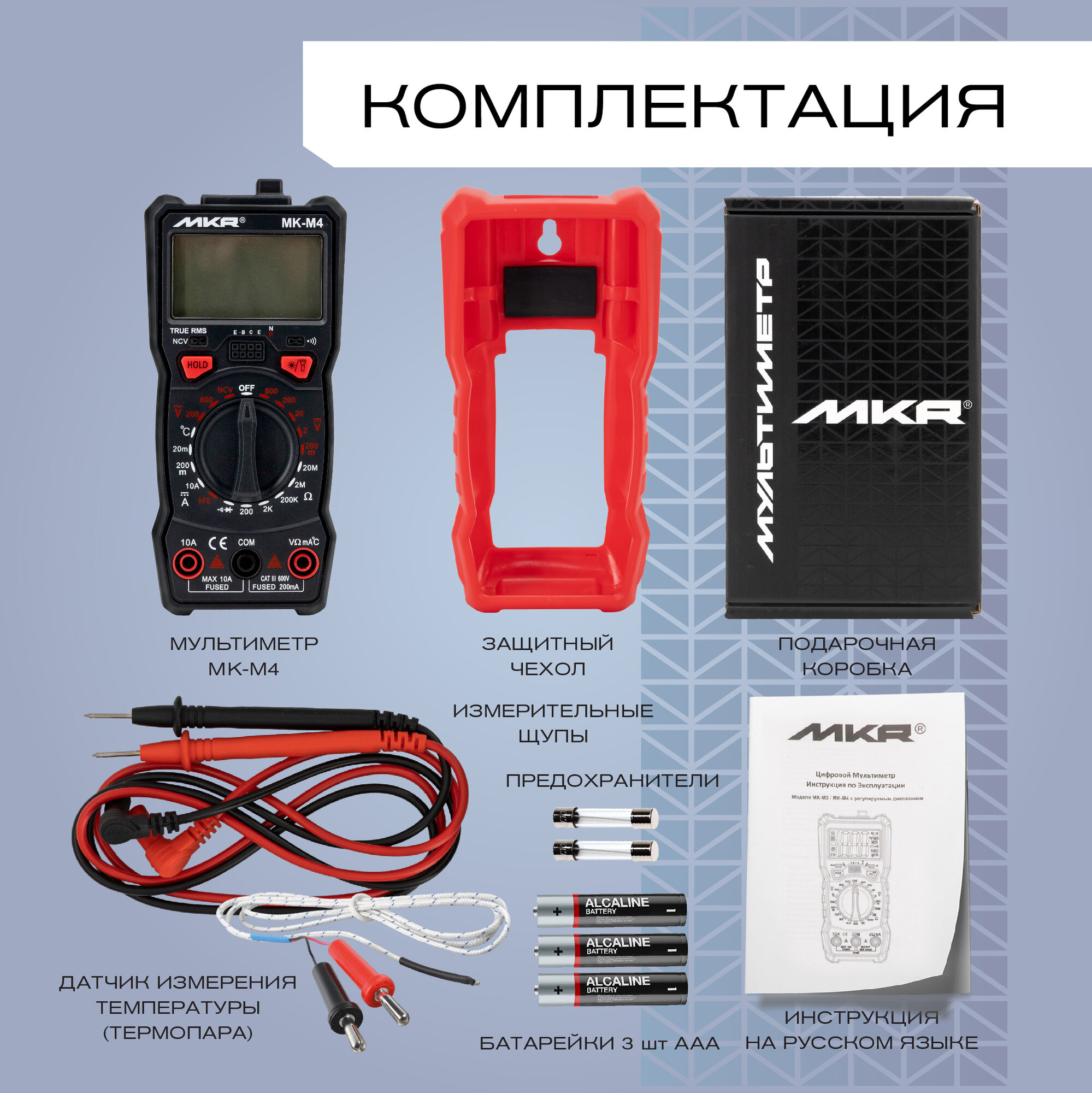 Мультиметр цифровой с термопарой и предохранителями MK-M5
