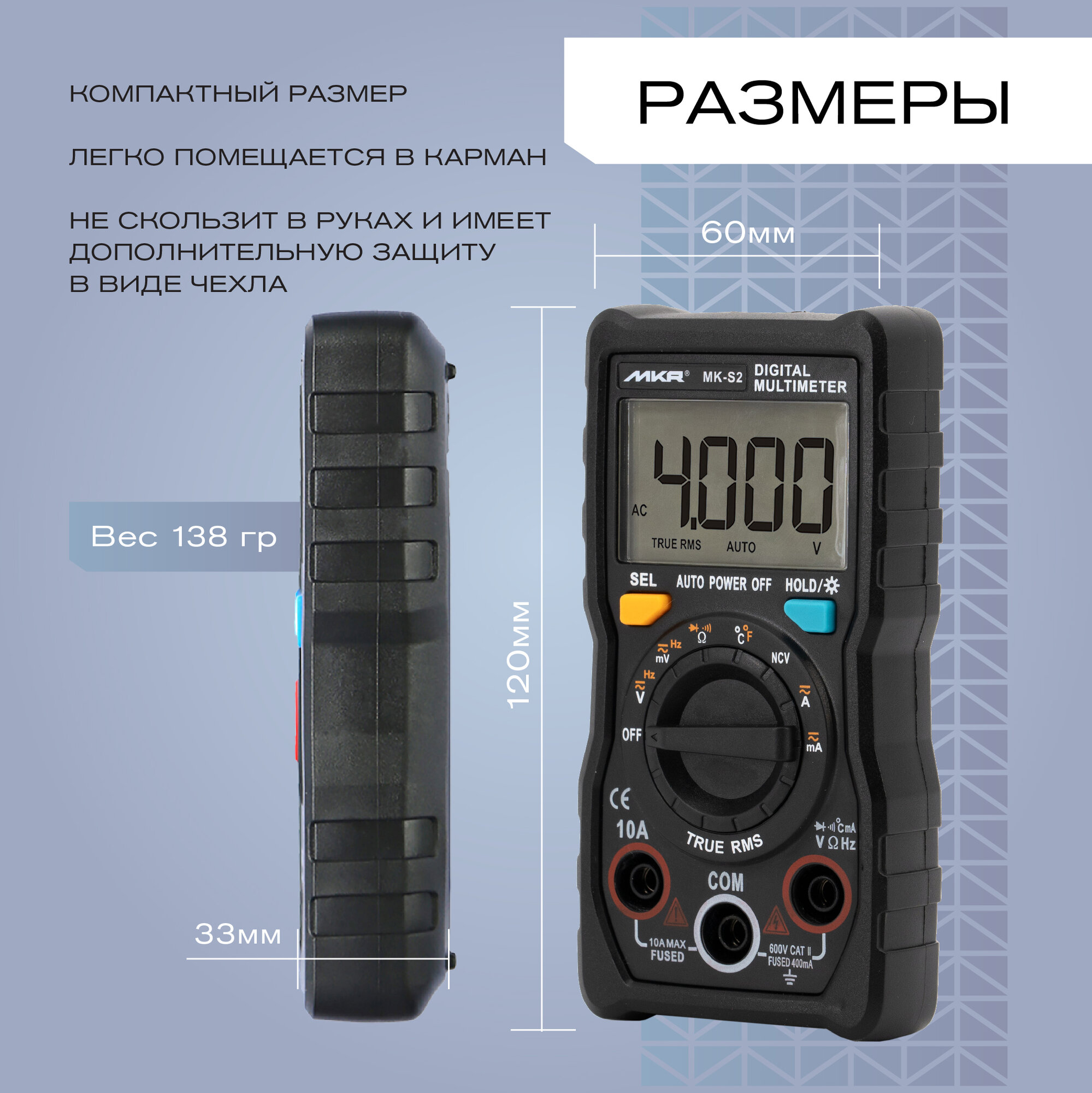 | Доп. опции мультитестера | амперметр, фонарик, функция автоотключения |