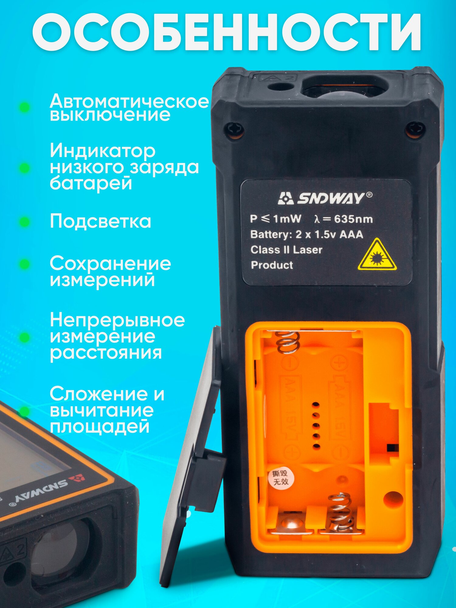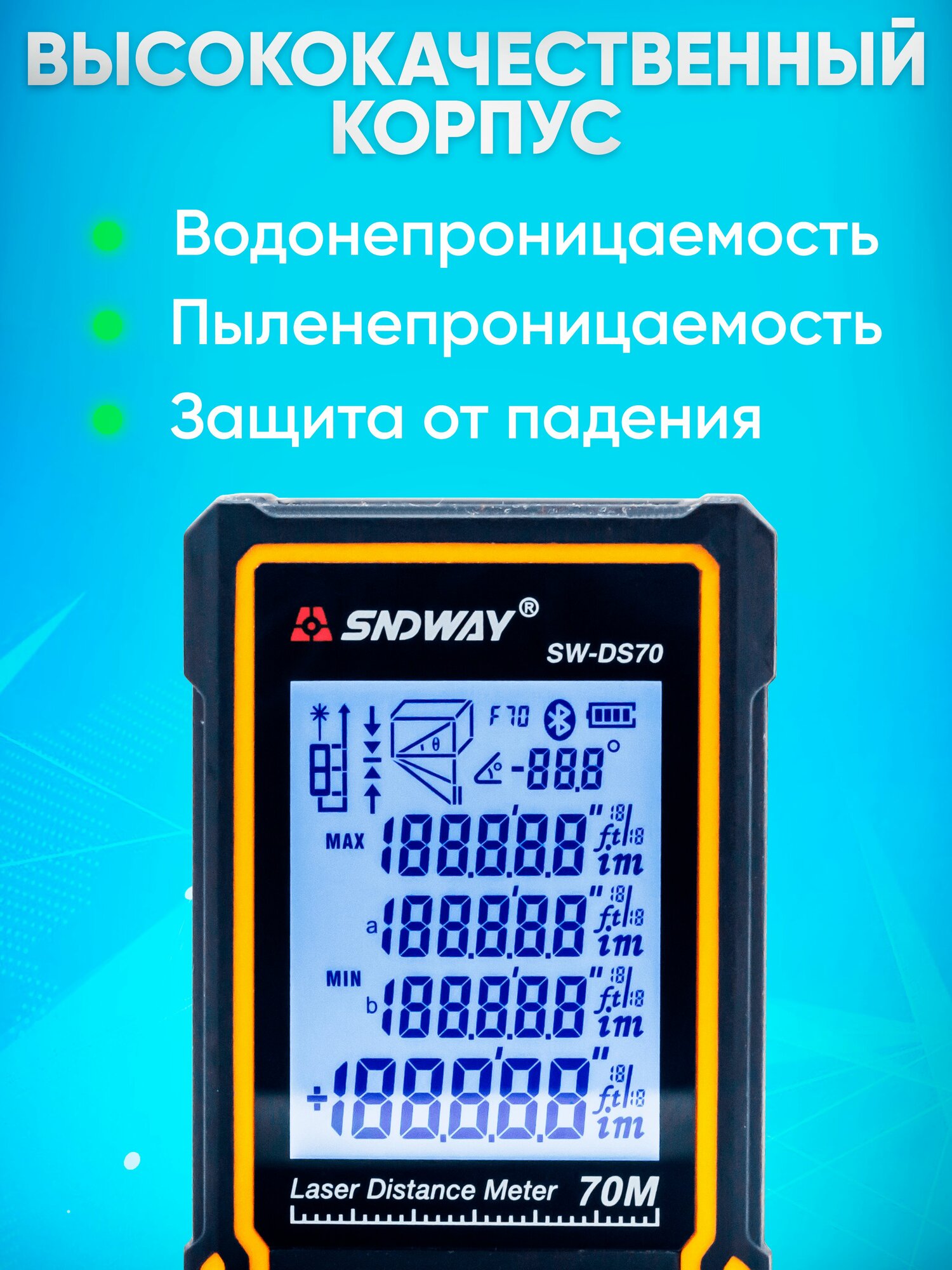Дальномер лазерный SNDWAY SW-DS70 70 метров интересное: