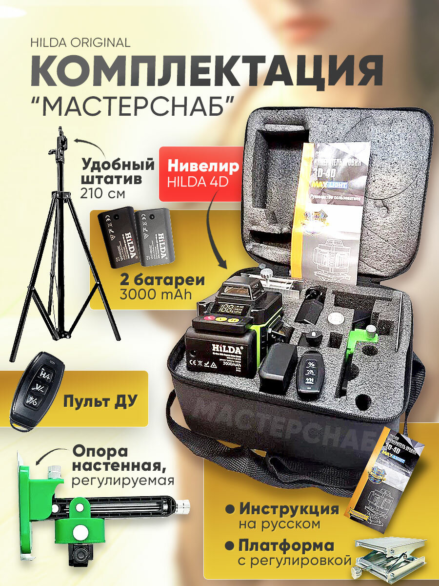 Лазерный нивелир HiLDA 4D Bluetooth 2 акб х3000 mAh со штативом 210 см интересное:
