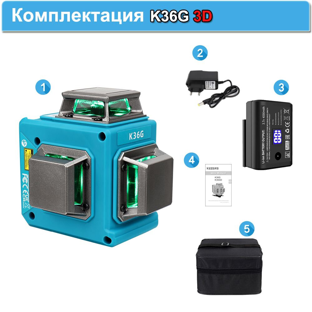 Лазерный уровень/нивелир KEZERS K36G, Зеленый луч 360 3D 12 Линий интересное: