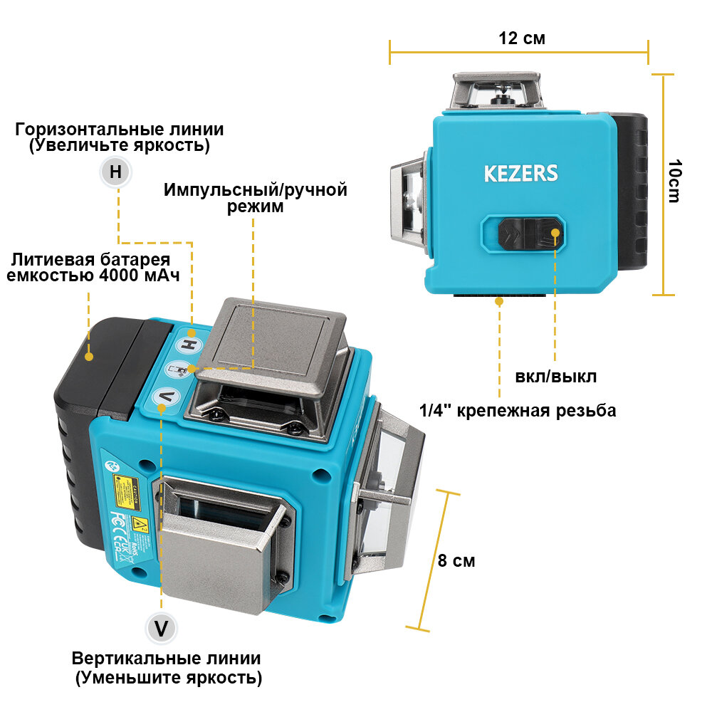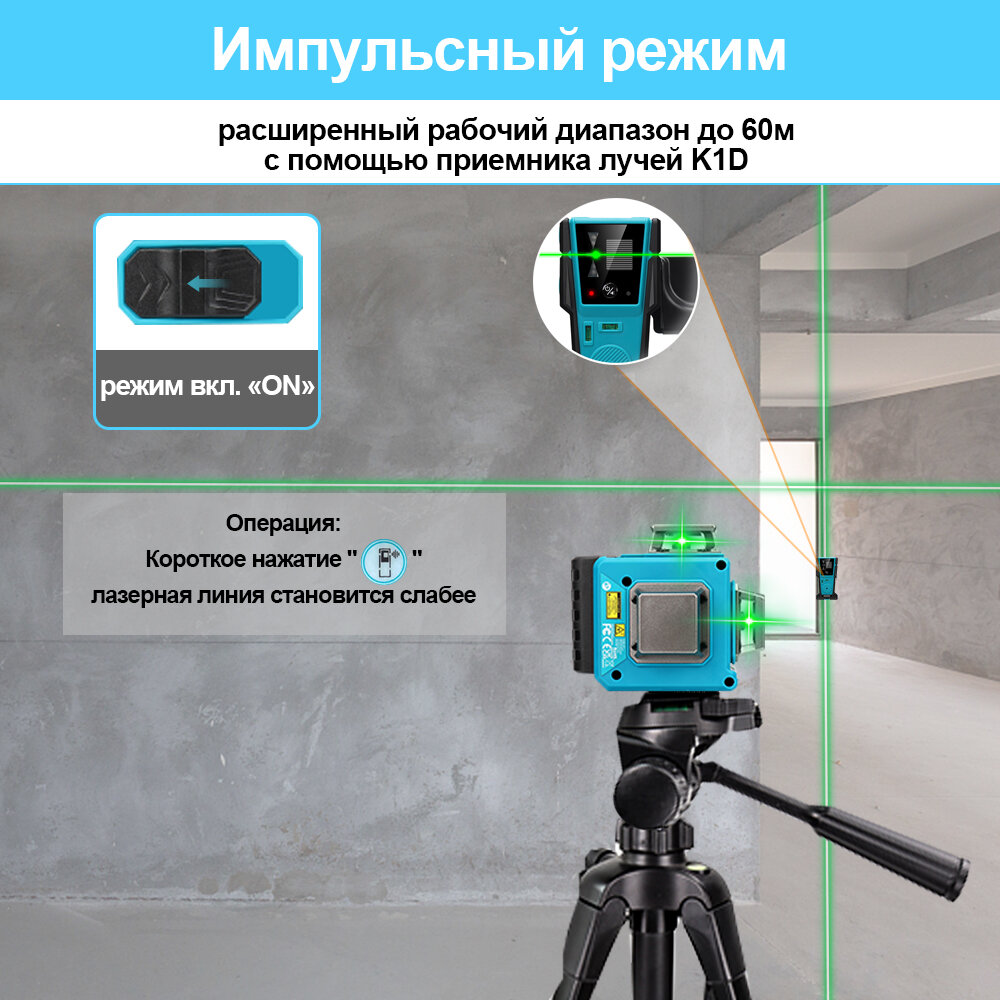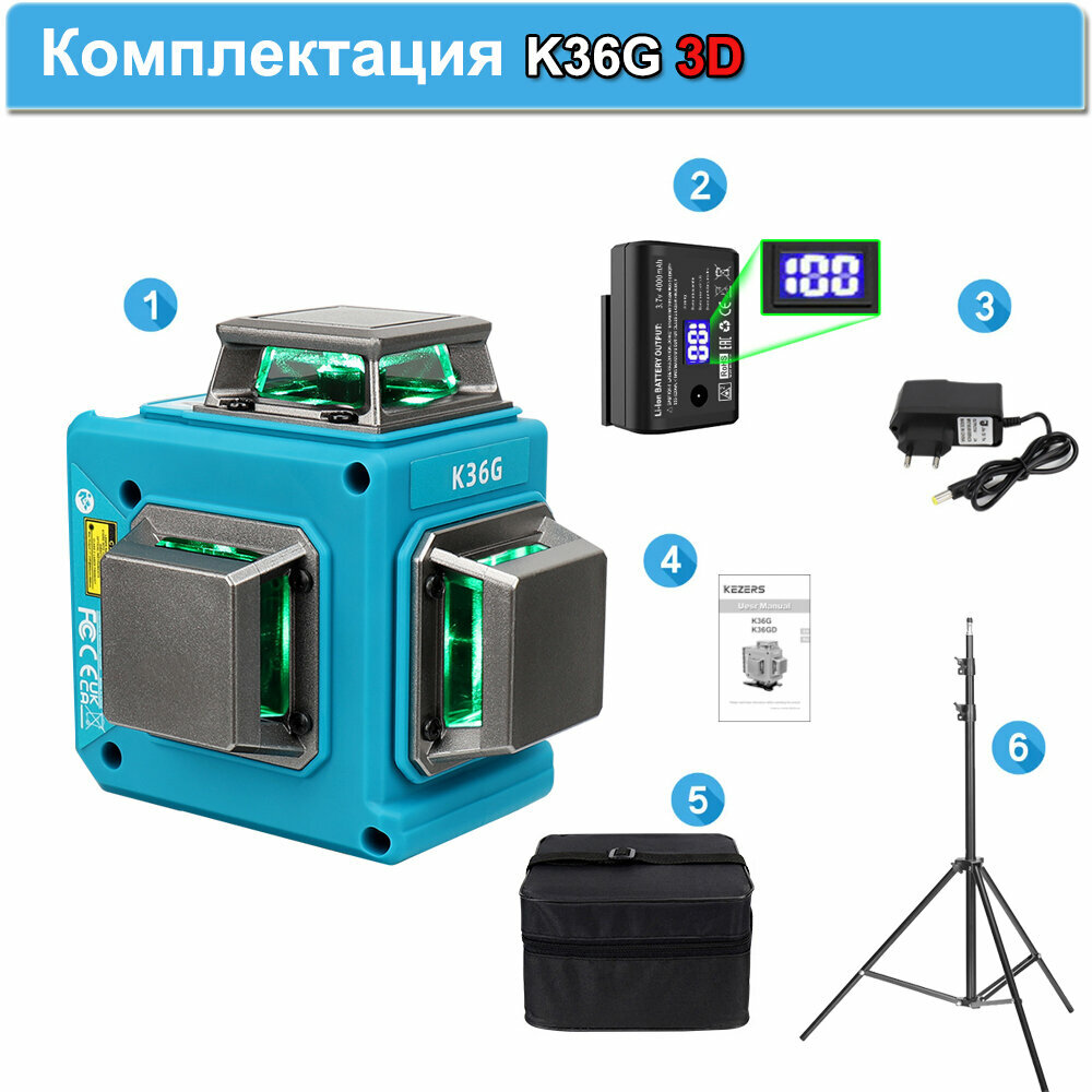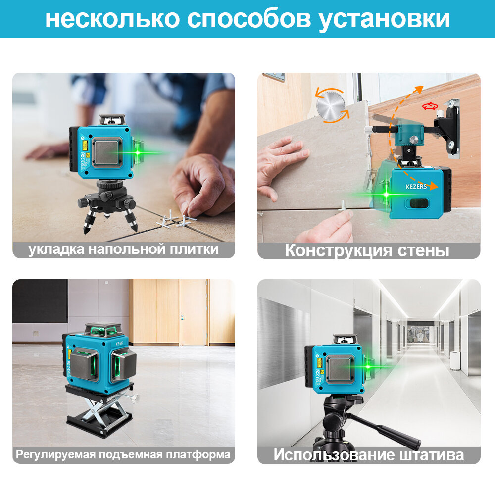 Лазерный уровень/нивелир KEZERS K36G, Зеленый луч 360 3D 12 Линий,штатив 1,6 м интересное: