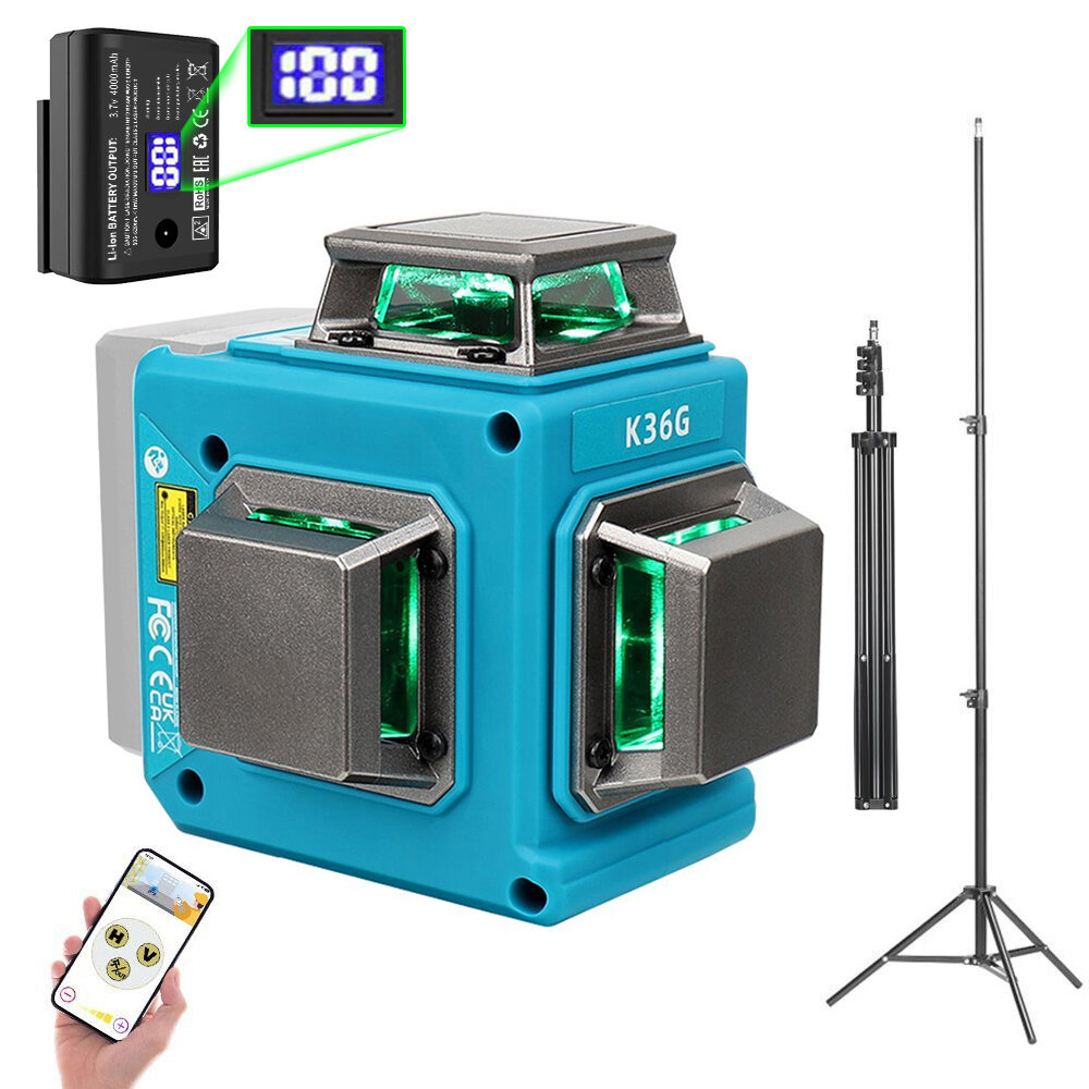 Лазерный уровень/нивелир KEZERS K36G, Зеленый луч 360 3D 12 Линий, С 2 шт. литиевыми батареями 4000 мАч