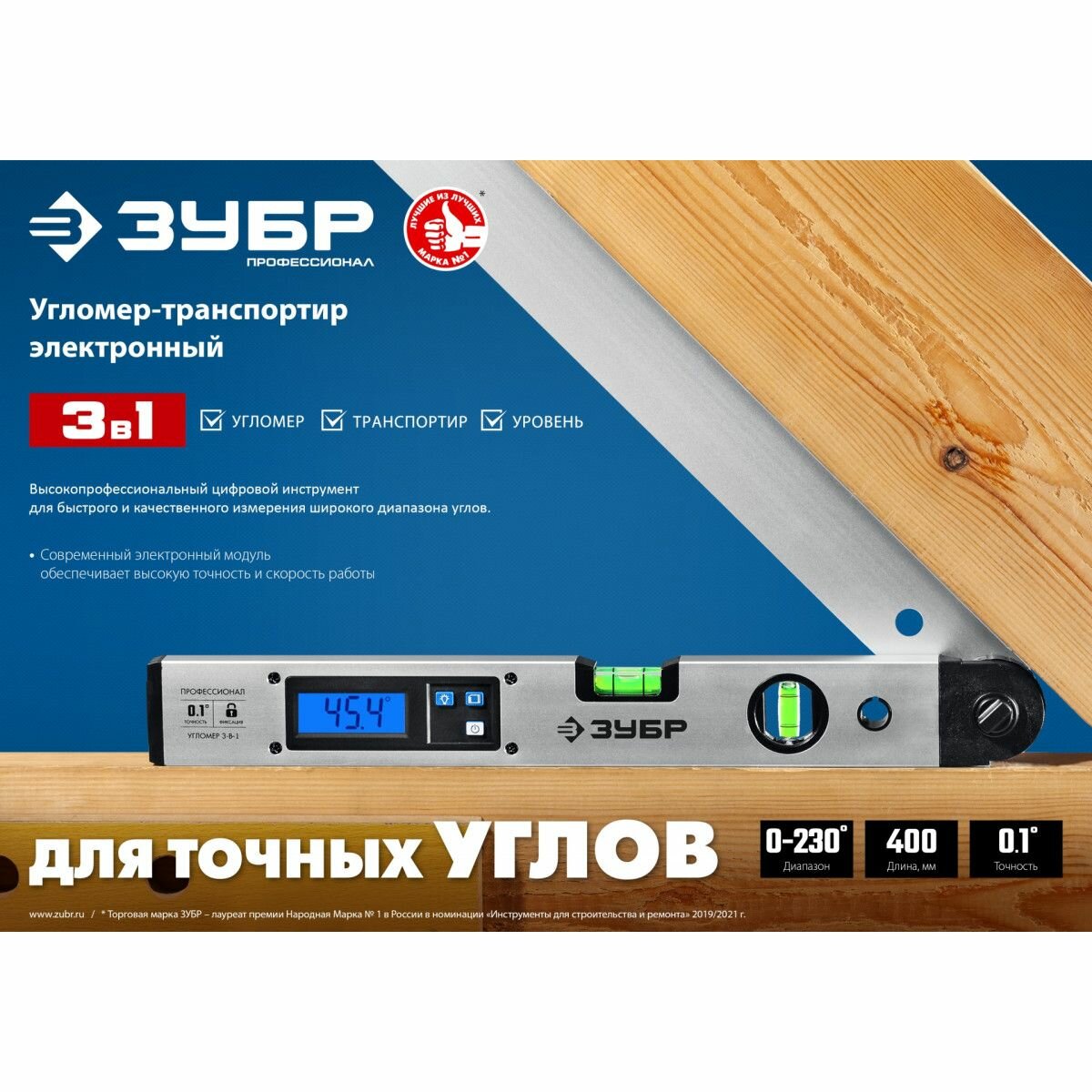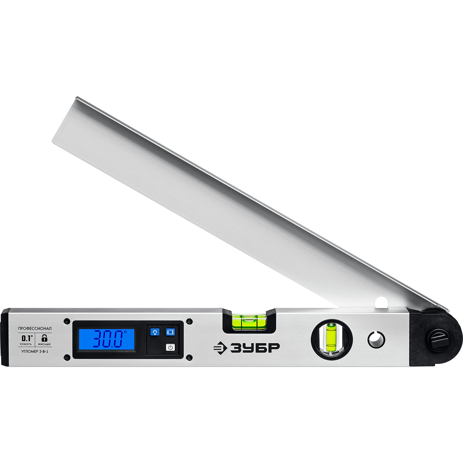 Угломер электронный 3 в 1, 400 мм, Диапазон 0-230°, Точность ±0,1°, HOLD, Подсветка, Фиксация угла, ЗУБР Профессионал