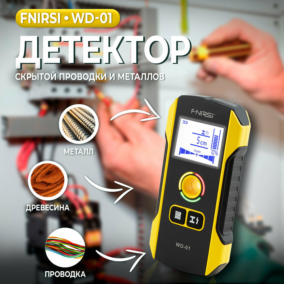 Детектор скрытой проводки и металлов FNIRSI WD-01 / Портативный цифровой индикатор проводки / Трассоискатель интересное: