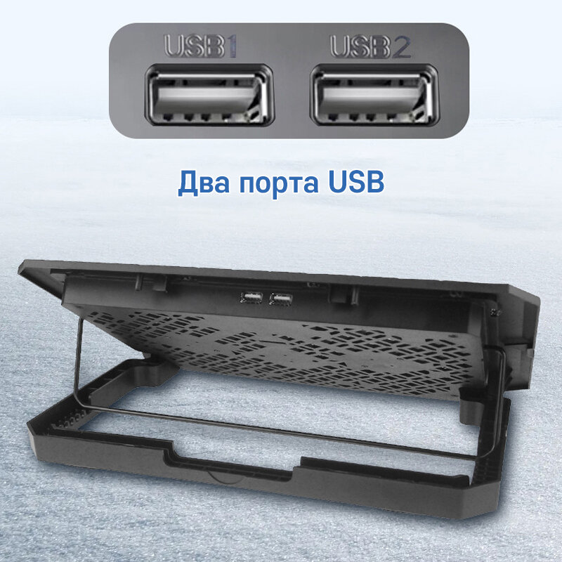Регулируемая охлаждающая подставка для ноутбуков, 2 вентилятора, подсветка, 5 углов наклона, держатель для смартфона, 2 USB , для экрана 13"-19"