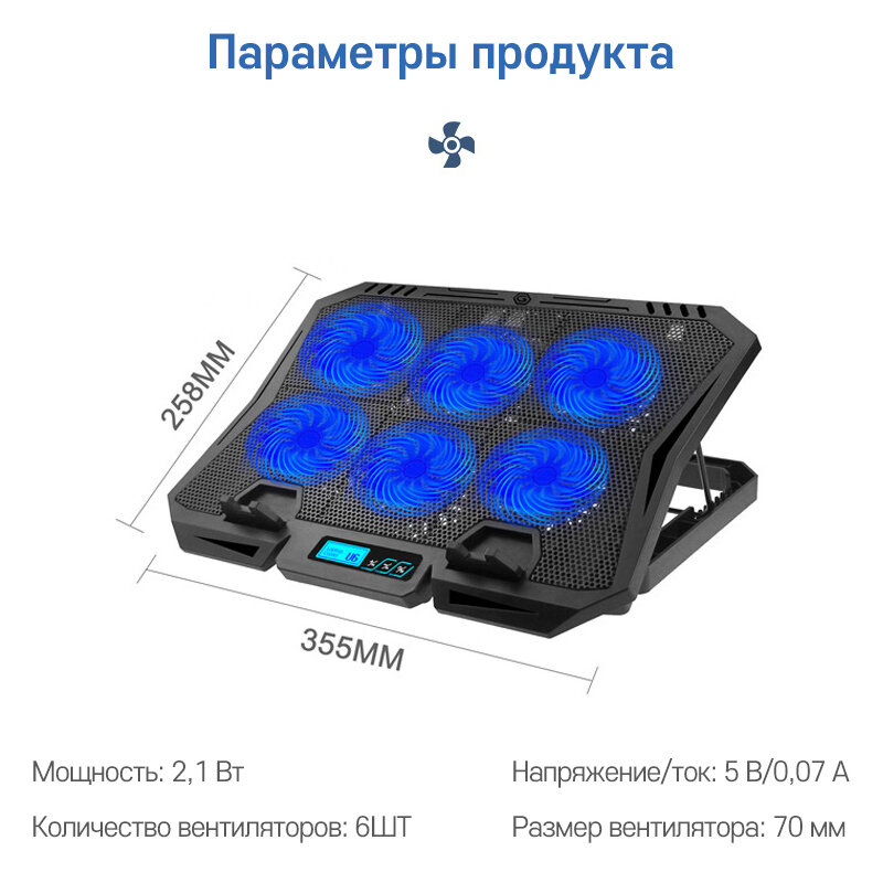 Подставка для ноутбука с охлаждением, с дисплеем, черная интересное: