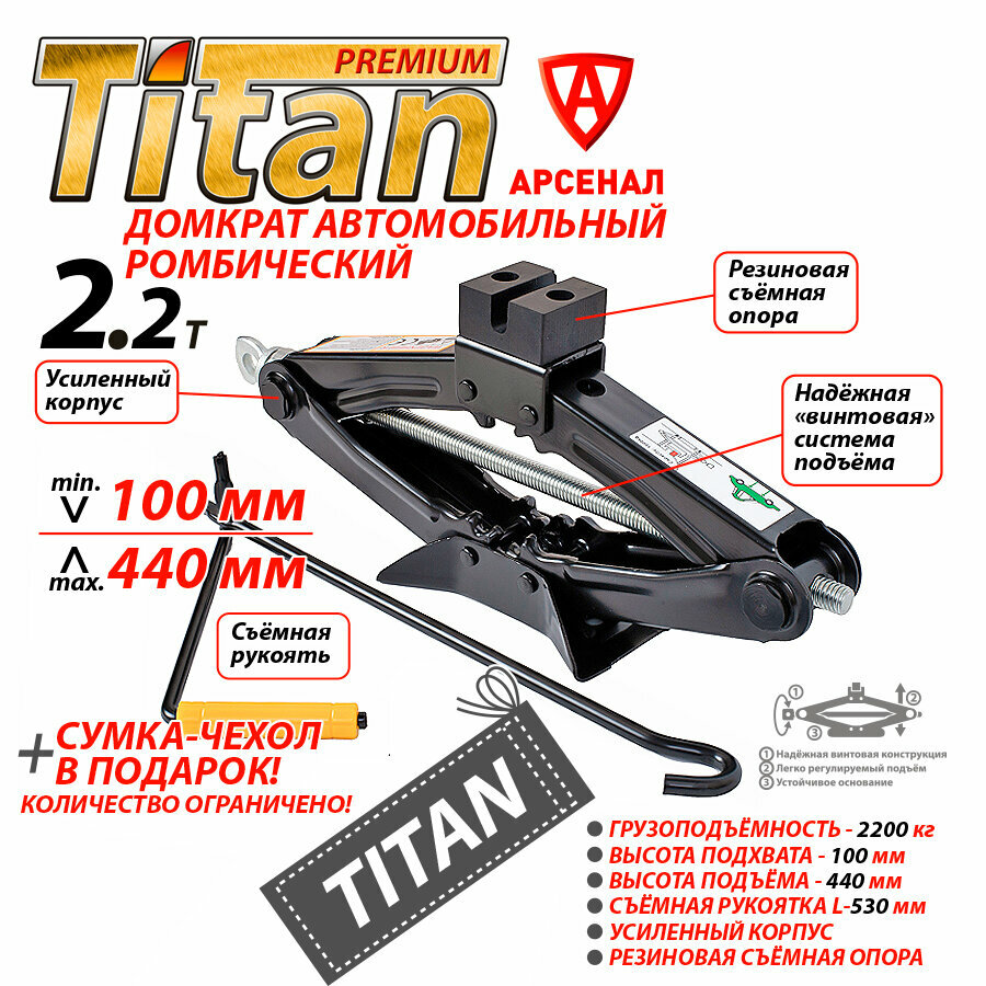 Домкрат ромбический 2,2т. (100-440мм) сумка-чехол в подарок! Механический автомобильный 2200кг Titan, CT112R интересное:
