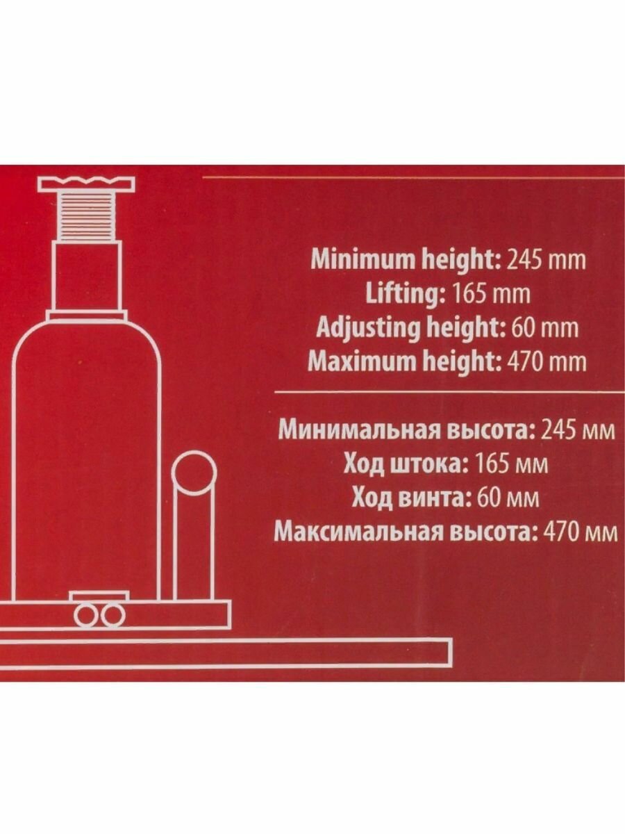 Домкрат бутылочный 20т с клапаном (h min-235мм, h max-445мм)