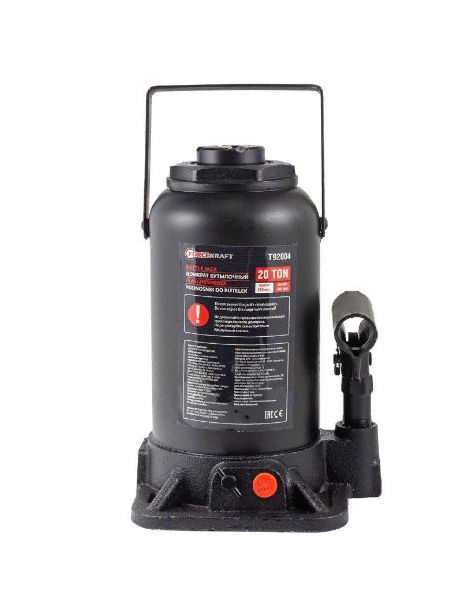Домкрат бутылочный 16т с клапаном (h min-227мм, h max-427мм) FORCEKRAFT FK-T91604(DS)