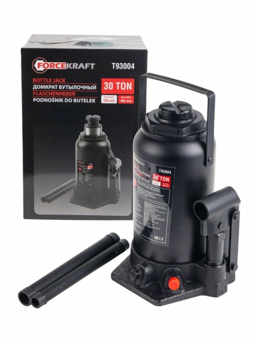 FORCEKRAFT FKT93004 FK-T93004_домкрат бутылочный! 30т с клапаном+доп.ремкомплект, подъём 255-405мм\