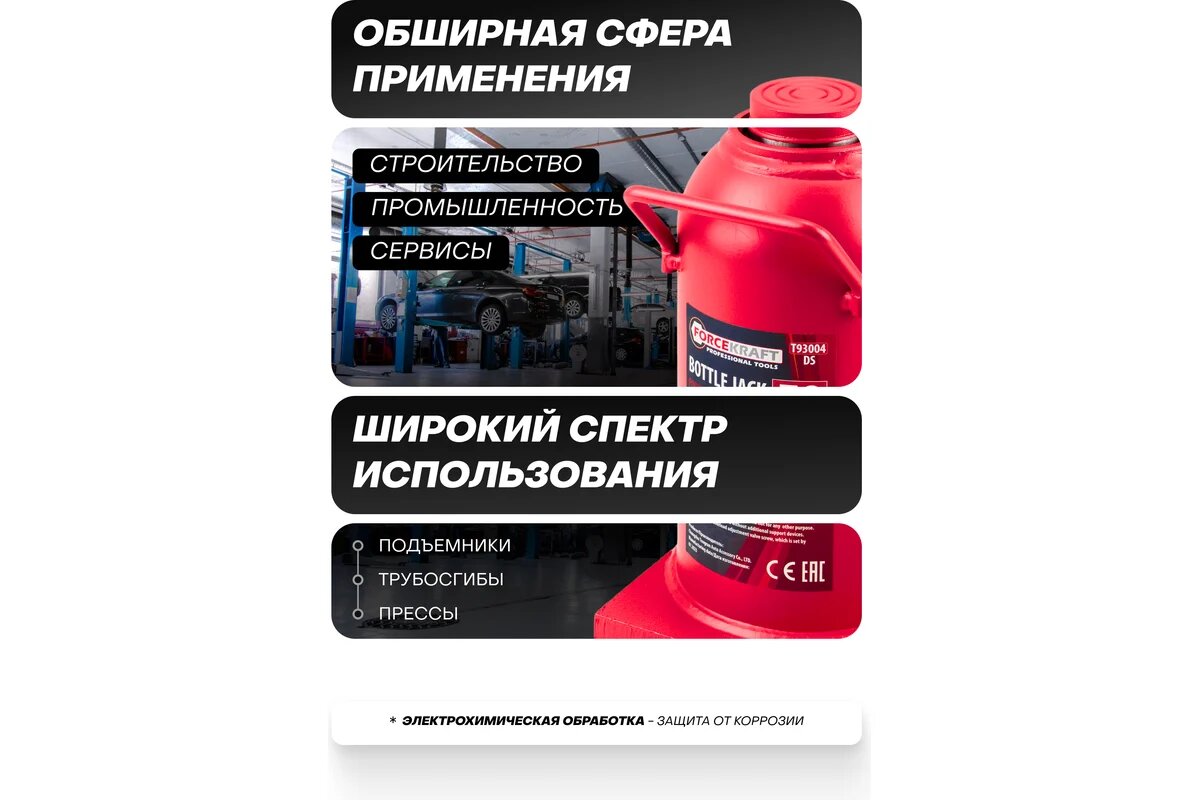 Домкрат гидравлический бутылочный, 30т ForceKraft интересное: