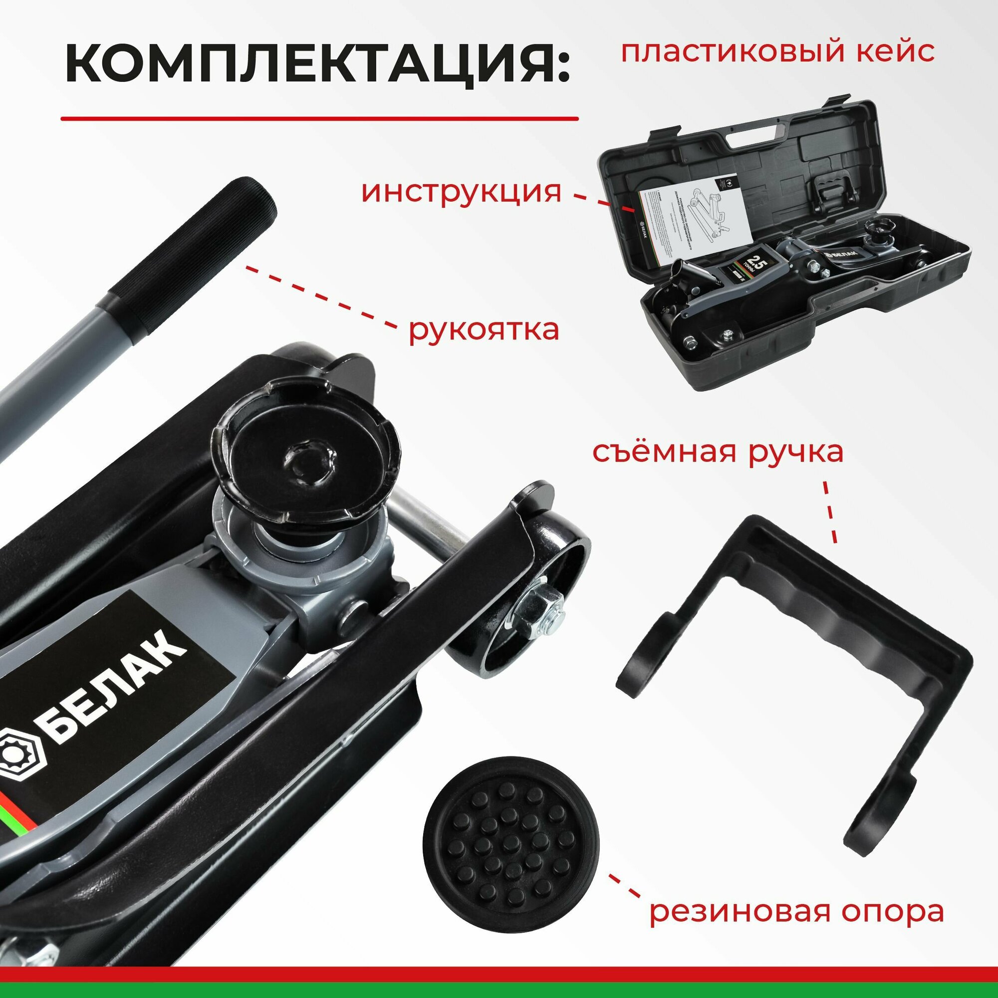 Домкрат подкатной автомобильный гидравлический 2,5 т / в кейсе / низкопрофильный 110-360 мм / БелАК БАК.80026 интересное:
