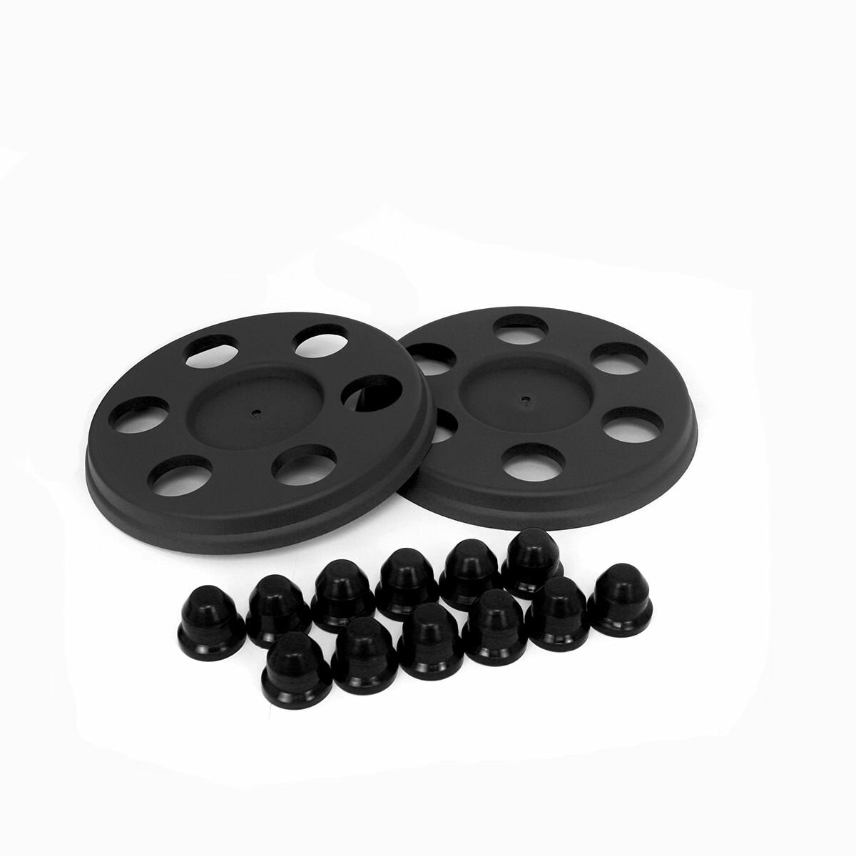 Купить Колпаки колёс с отверстиями + черные колпачки на гайки для а/м Газель 3302, Бизнес, Next (в упак. 2 шт +12 шт)