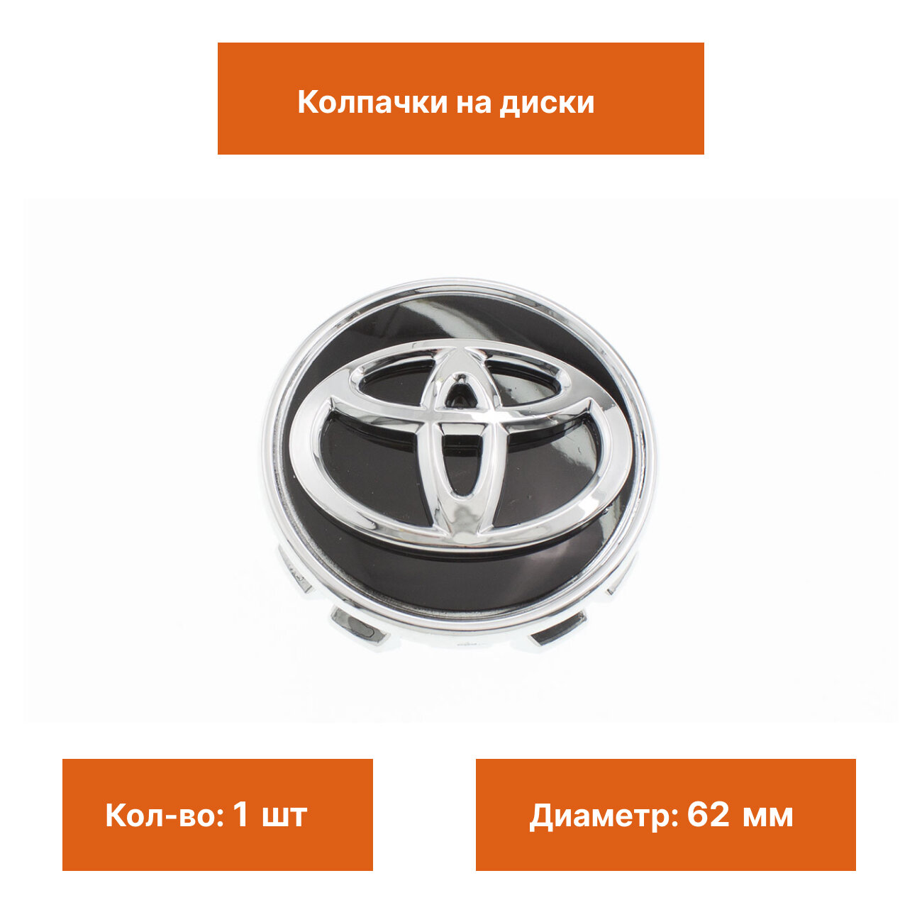 Купить Колпак на литой диск Toyota черный с хром эмблемой 62 мм