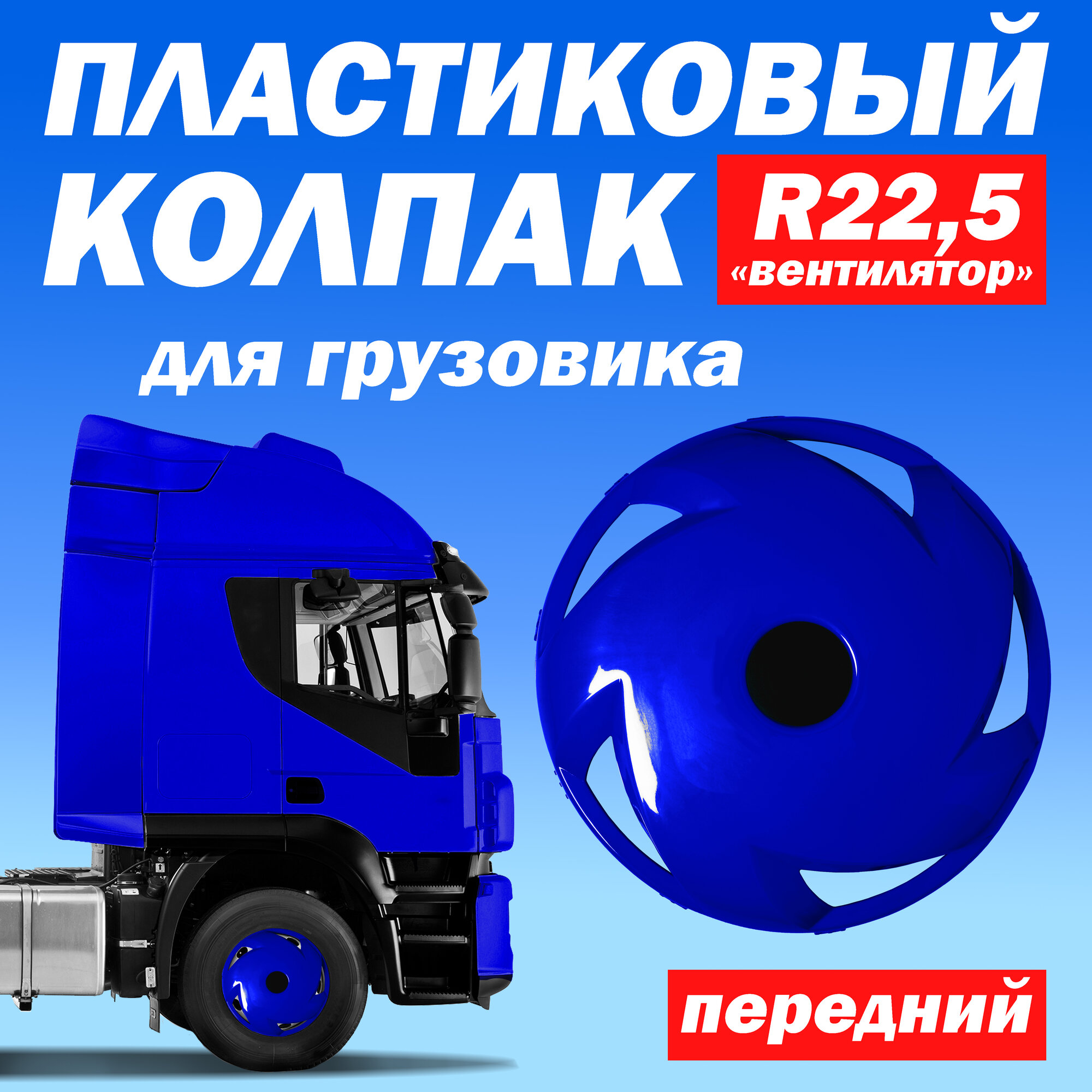 Купить Колпак колеса для грузовика R 22,5 "Вентилятор" передний синий