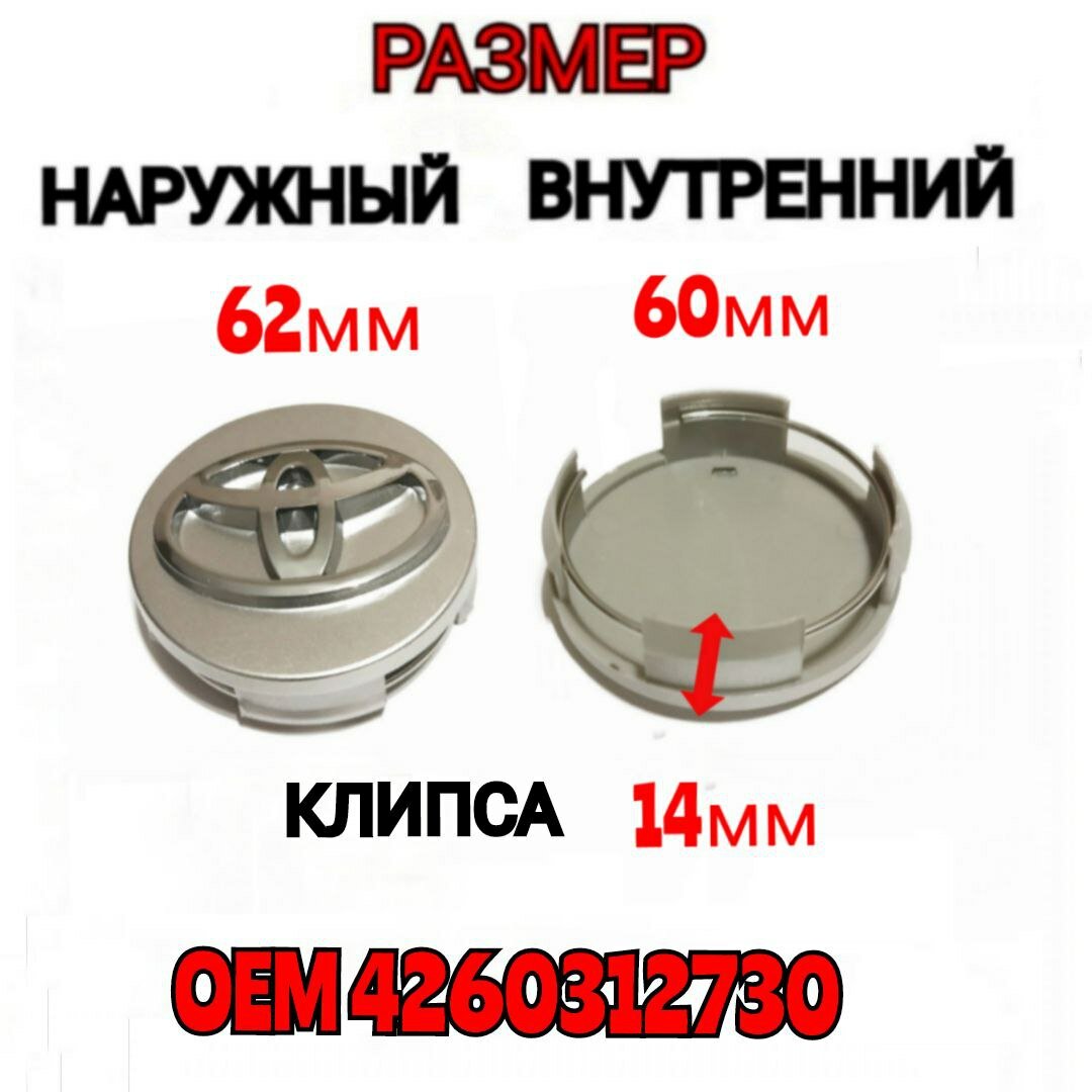 Заглушка диска/Колпачок ступицы ступицы литого диска для Тойота Toyota 62-60 цвет серебристый 4 штуки интересное: