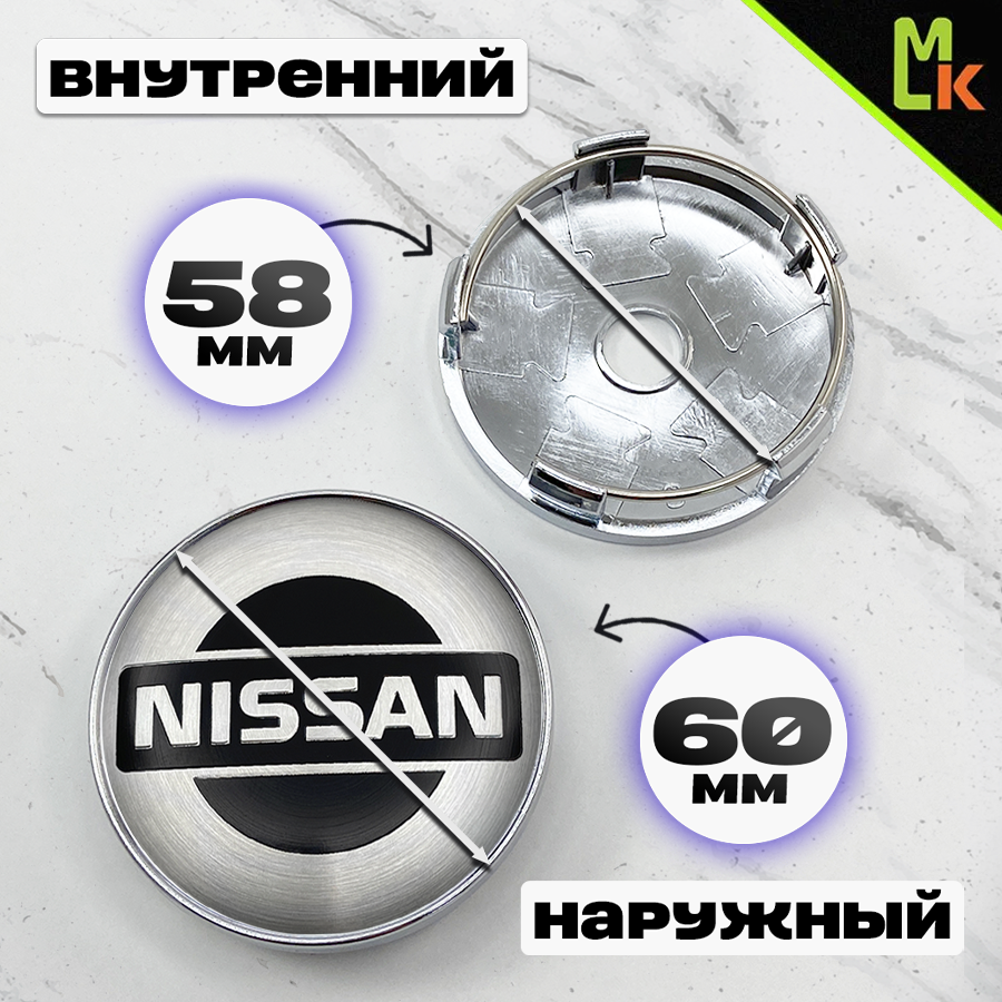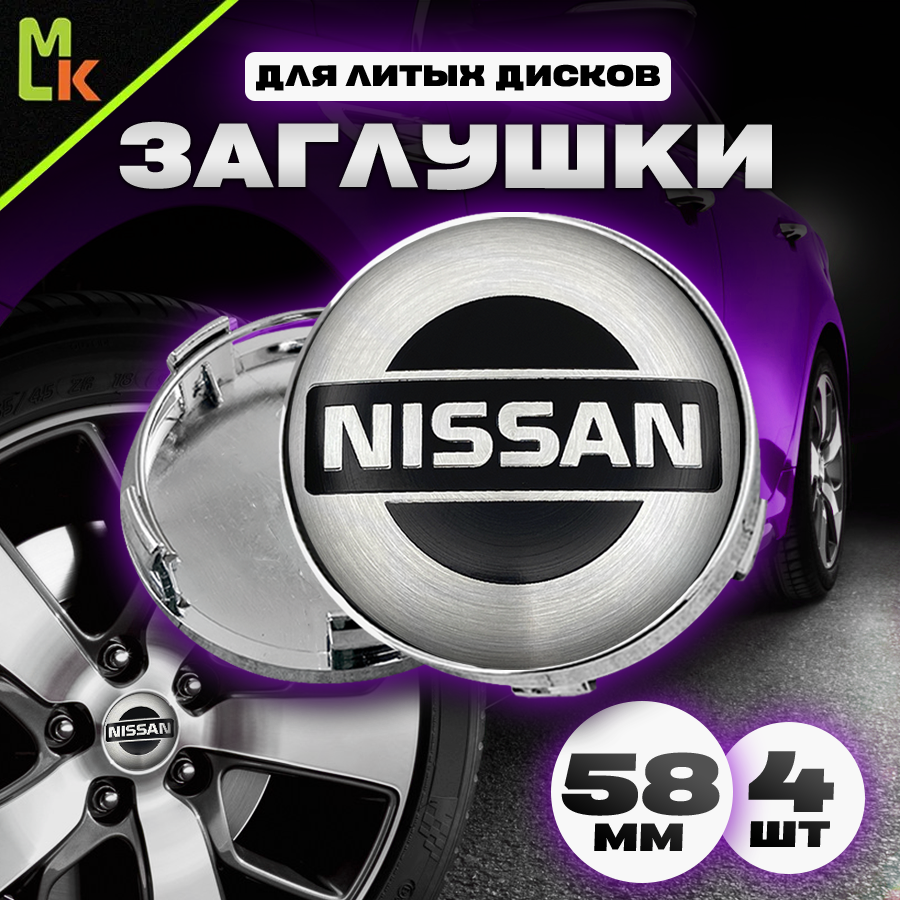 Колпачки на ступицу колеса 4 шт, автоколпак, заглушка диска, колпачки в автомобильные диски, с эмблемой "Ниссан" посадочный диаметр 58 мм