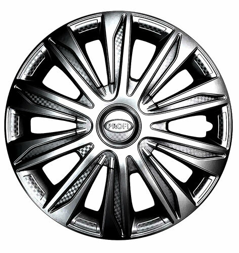 Колпаки на колёса R14 PROFI, черный глянец карбон, на колесные диски авто, машины - 2 шт.