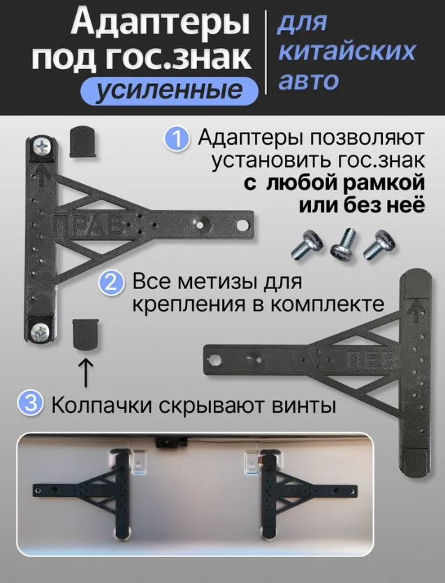 Адаптеры под гос знак (госномер) китайских авто усиленные - Безрамочная установка интересное: