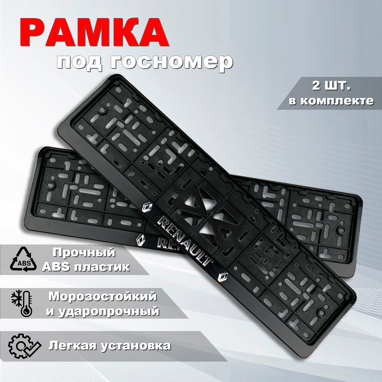 | Комплектация | Рамка номерного знака Рено (RENAULT) с защелкой, 2 шт. |
