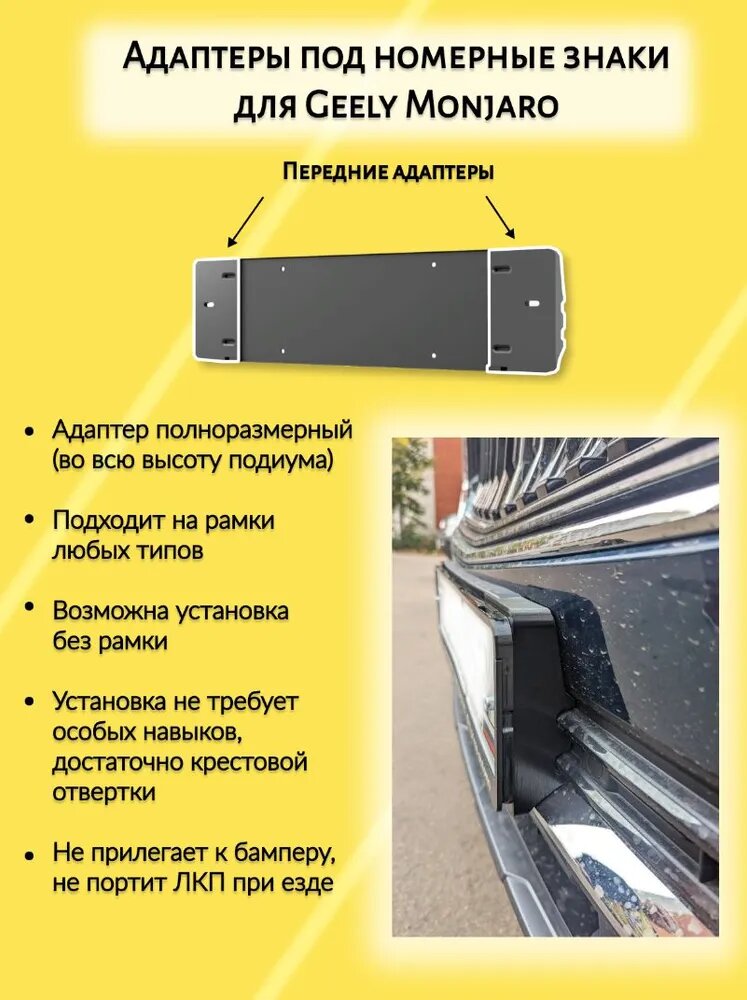 Комплект адаптеров под номерной знак Geely Monjaro, передние и задние