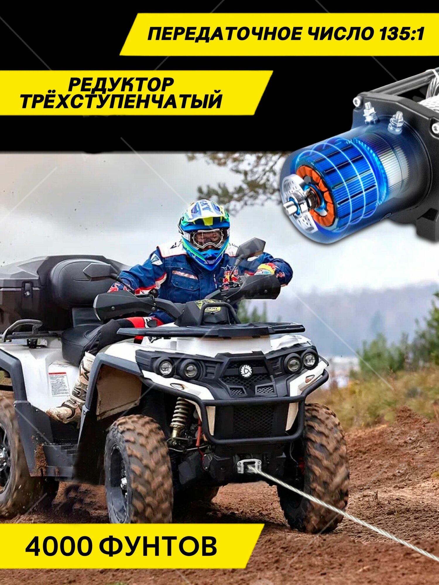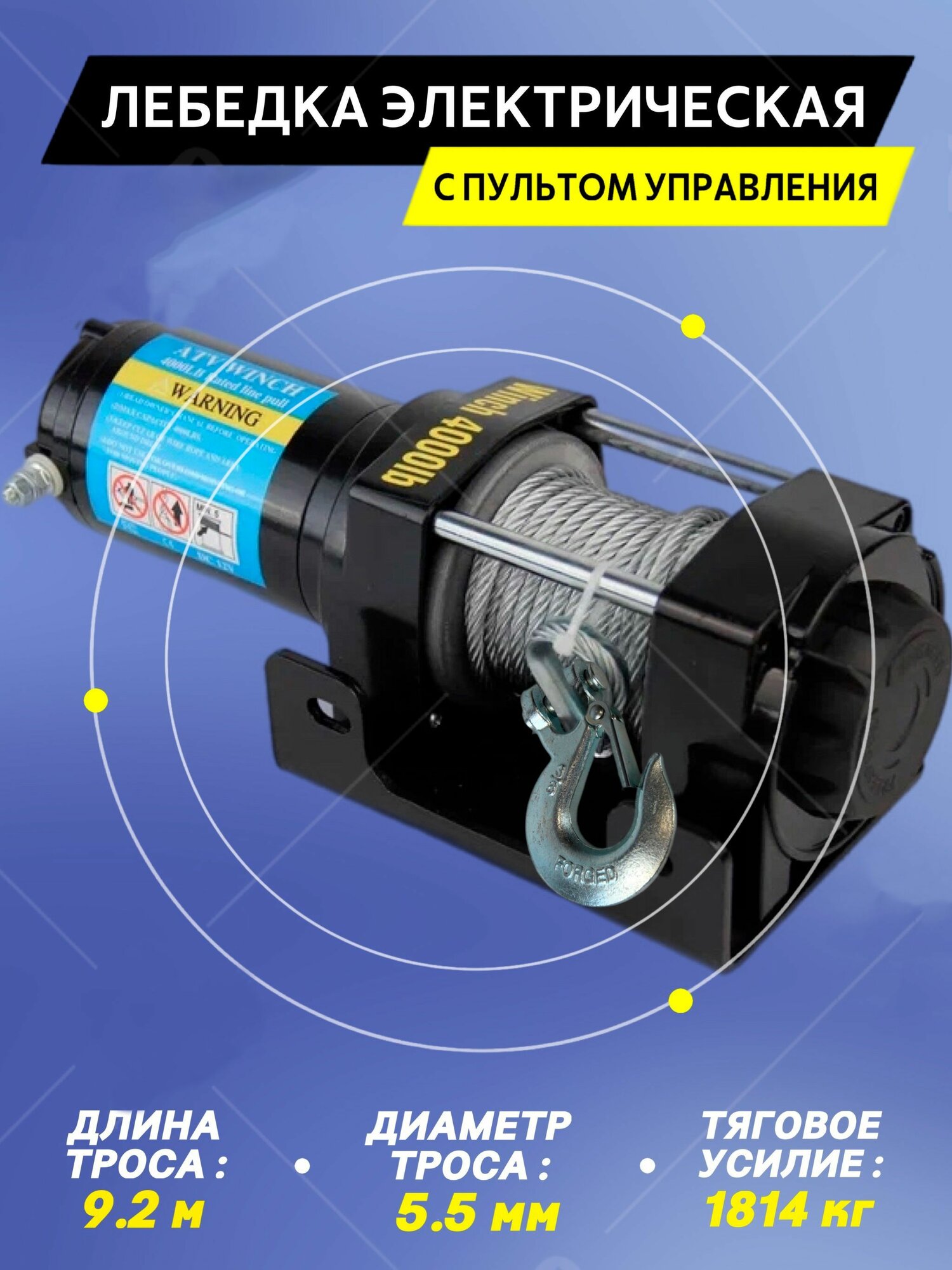Лебедка электрическая переносная Electric Winch 12V 4000 LBS грузоподьемность 1814 кг интересное: