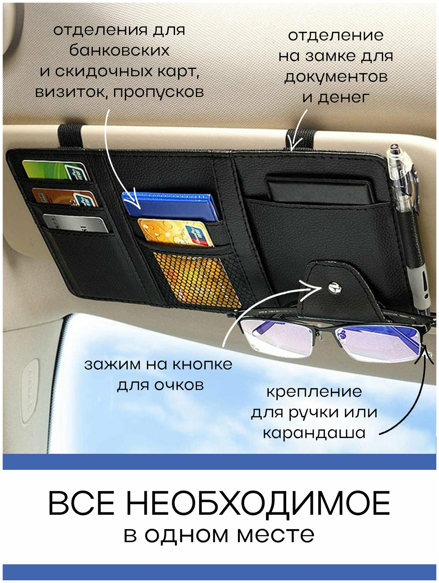 Органайзер подвесной на козырек в машину для водителя держатель автомобильный для документов, черный интересное: