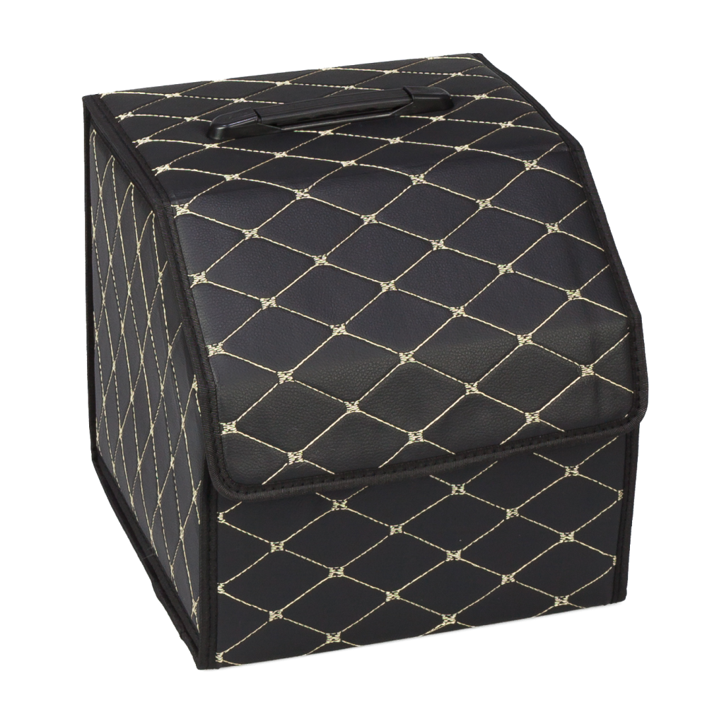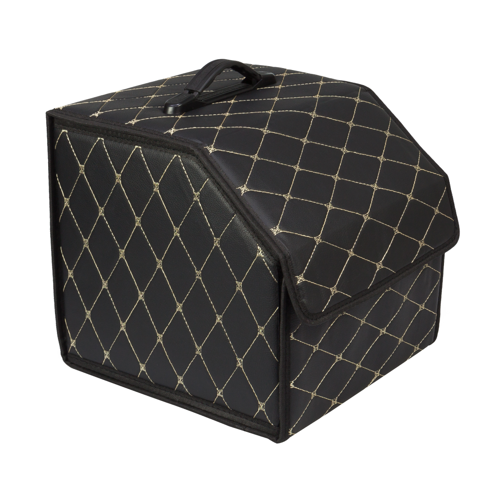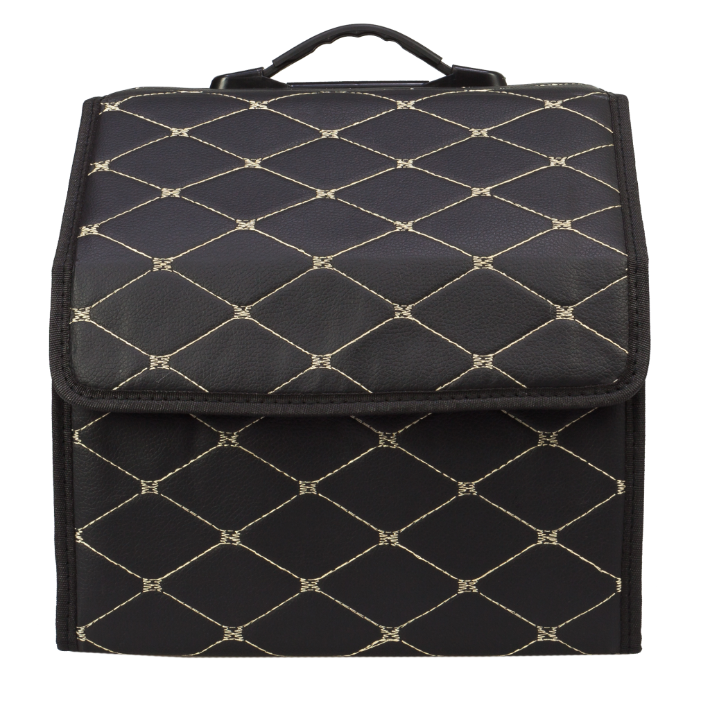 Саквояж в багажник автомобильный эко кожа черная синий ромб, объем 45 л
