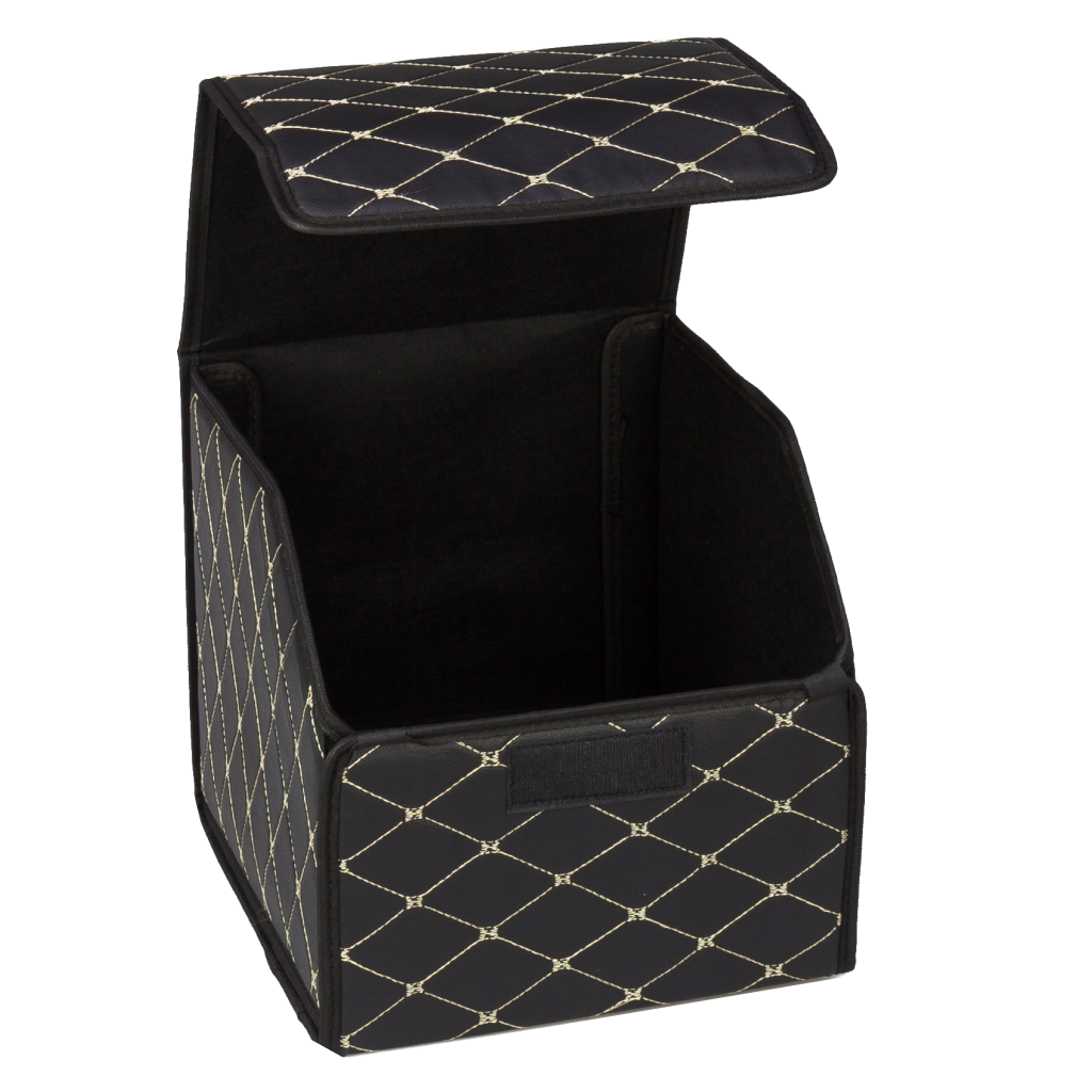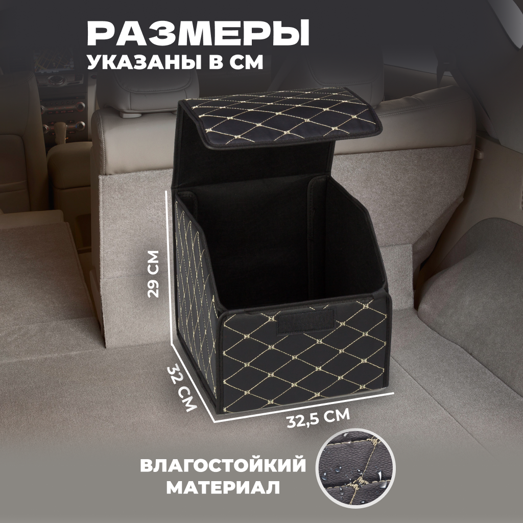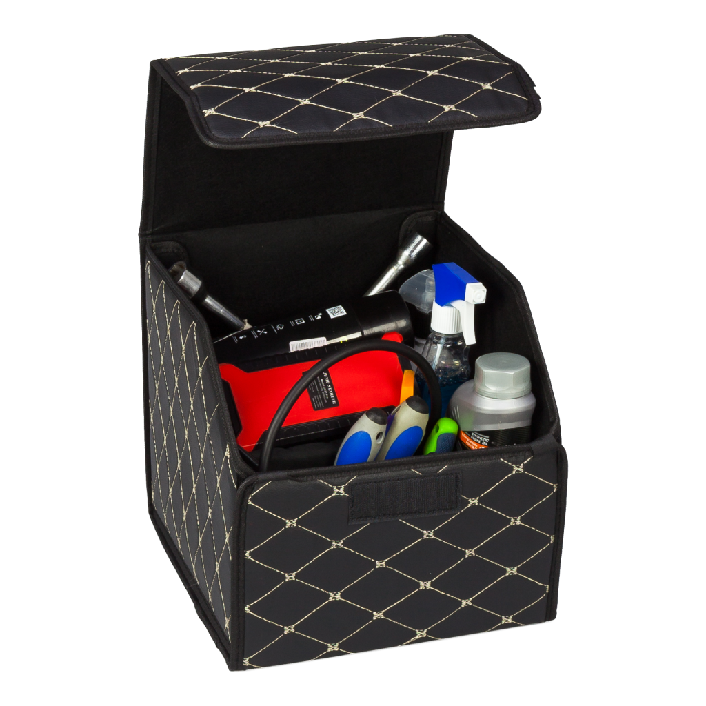 Органайзер (кофр) в багажник автомобиля, эко-кожа (полиуретан) + полиэстер. Размеры: 54х32х30 см, черный
