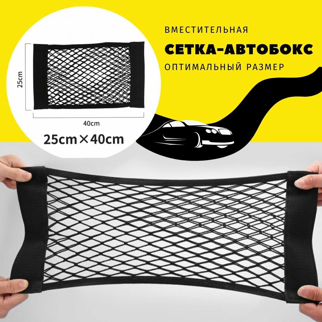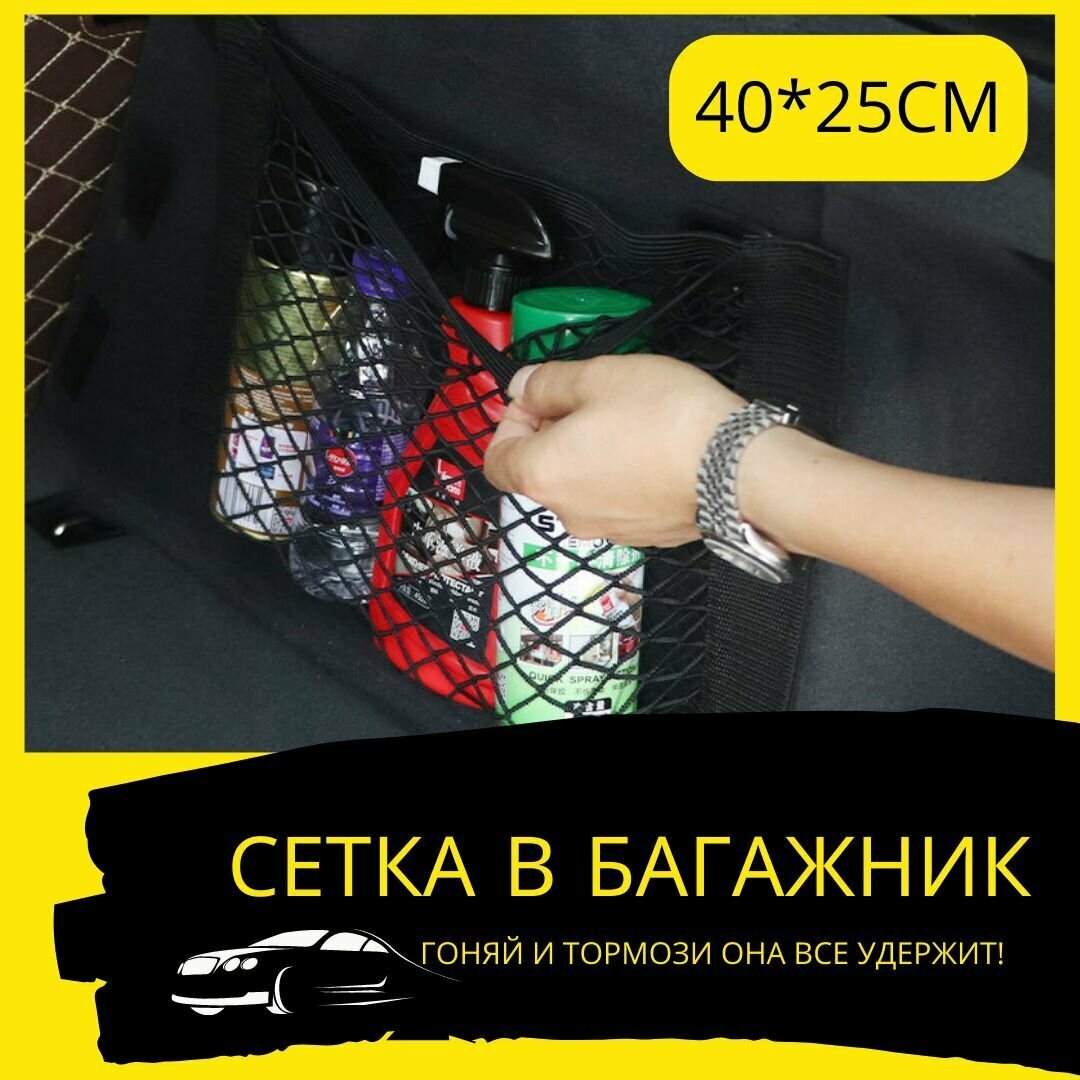 Сетка в багажник автомобиля на липучке / органайзер 40*25см для хранения в салон авто / 1шт интересное: