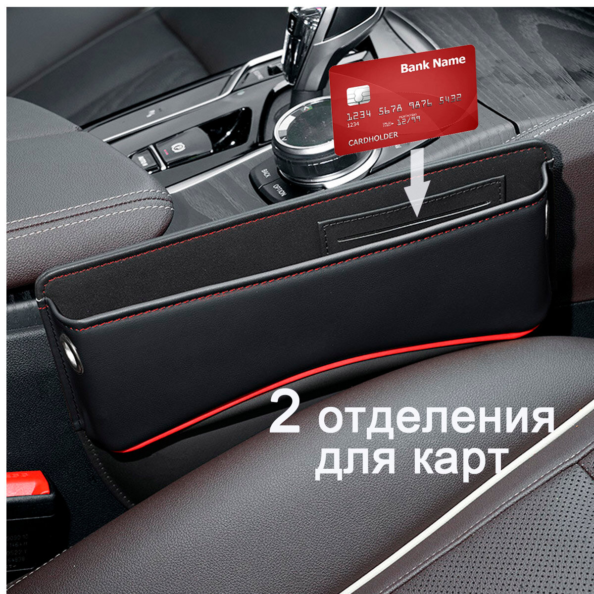 Купить Автомобильный органайзер водительский и пассажирский, кожаный карман для авто, хранение мелочей, между сидений, с отделом для карт, картхолдер