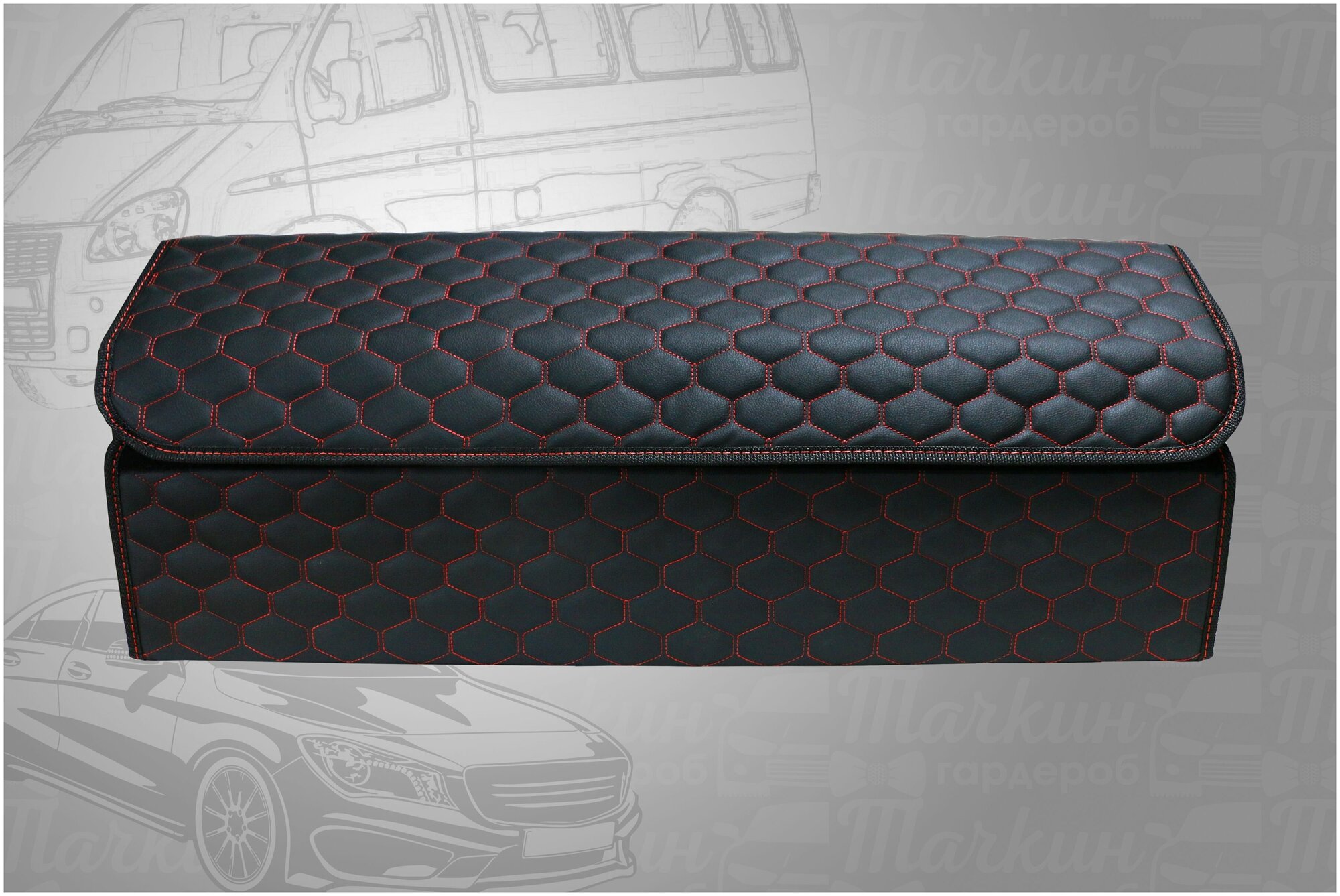СохранитьОрганайзер в багажник автомобиля 80х30х30 рисунок соты черн/строчка красная/саквояж/бокс/кофр для авто интересное: