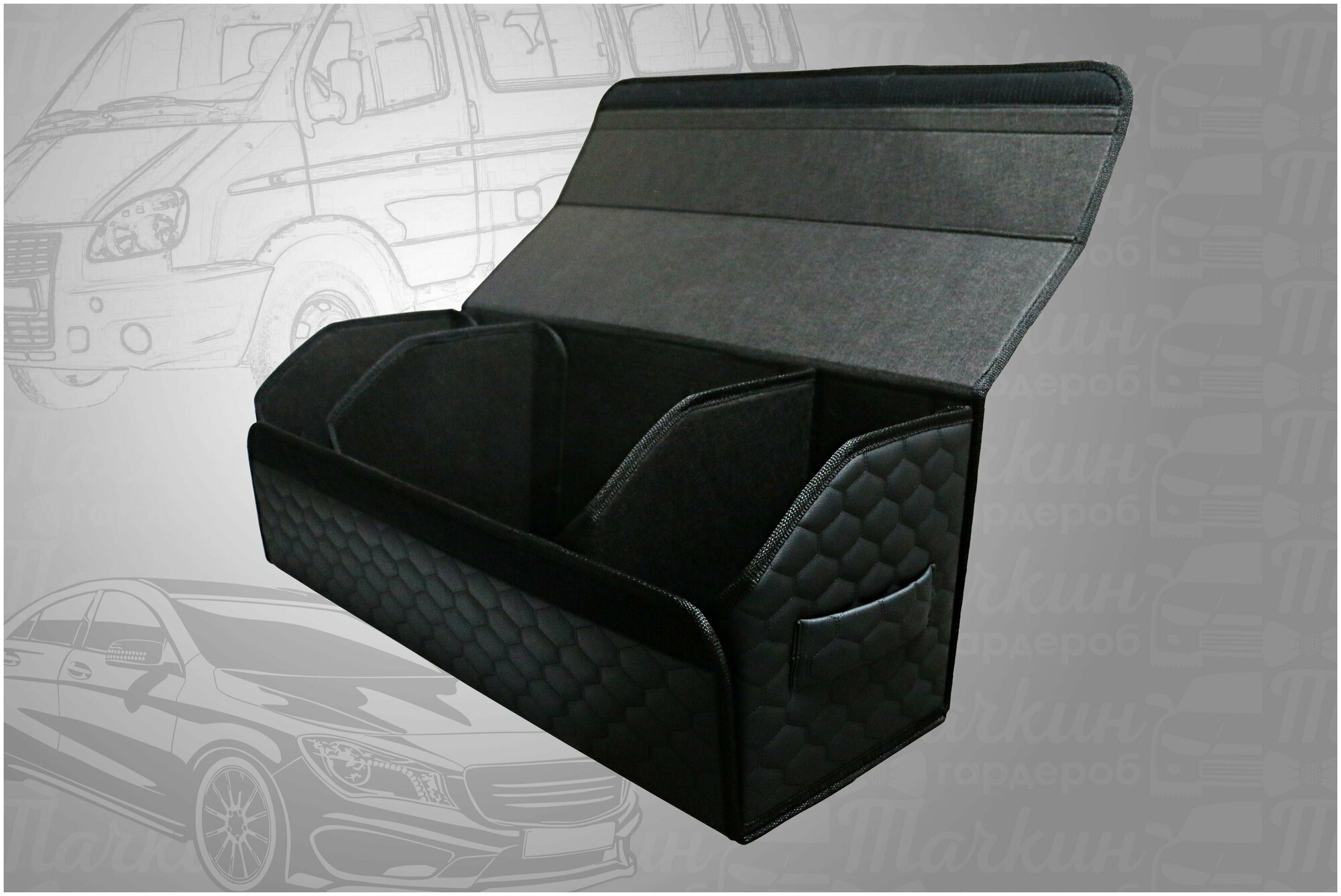 СохранитьОрганайзер в багажник автомобиля 80х30х30 рисунок соты черн/бокс/кофр для авто интересное: