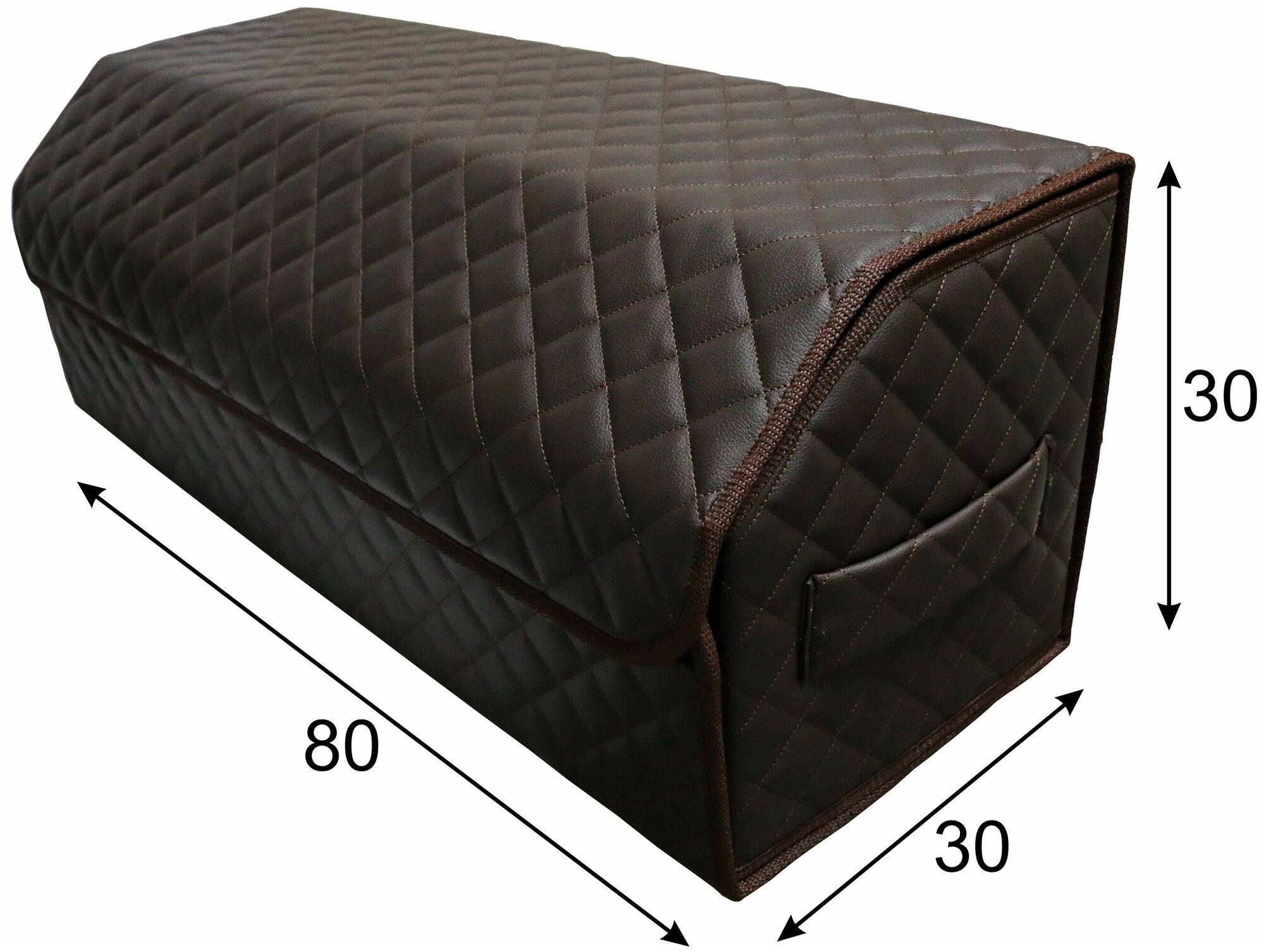 Органайзер для хранения в багажнике авто/Органайзер в багажник 80*30*35 квадрат коричневый строчка коричневая окантовка корич