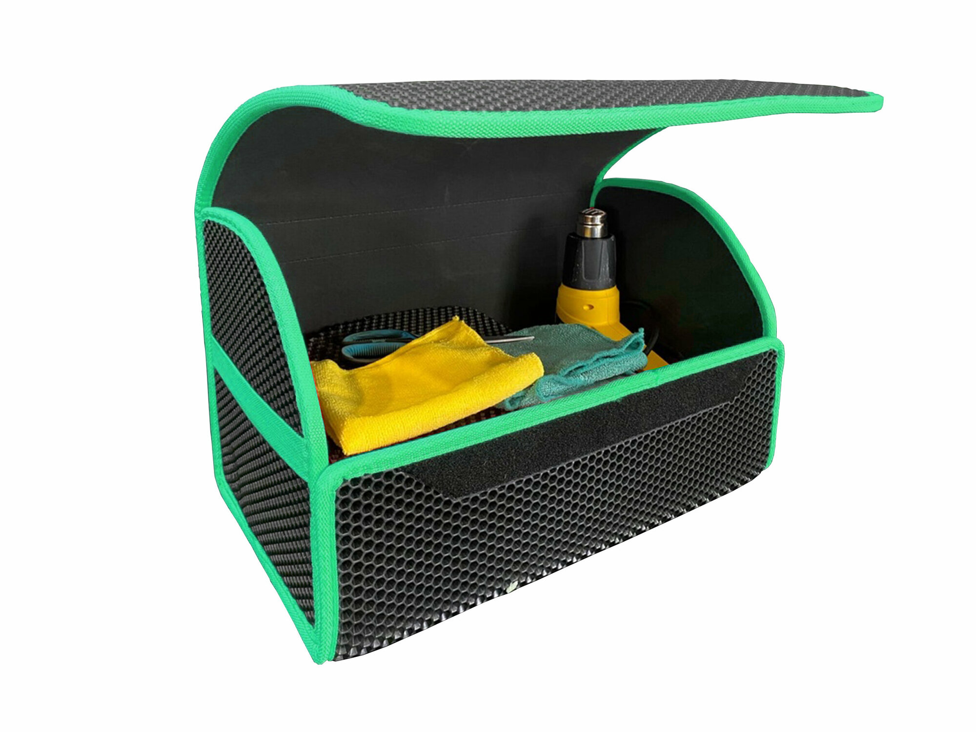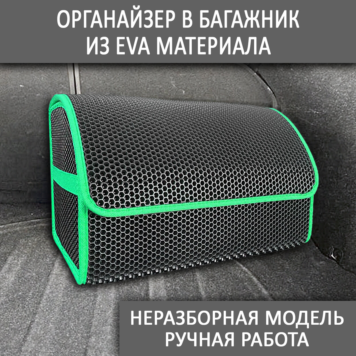 Купить Органайзер в багажник автомобиля для хранения вещей / Сумка органайзер из эва материала / Кейс в авто зеленый кант