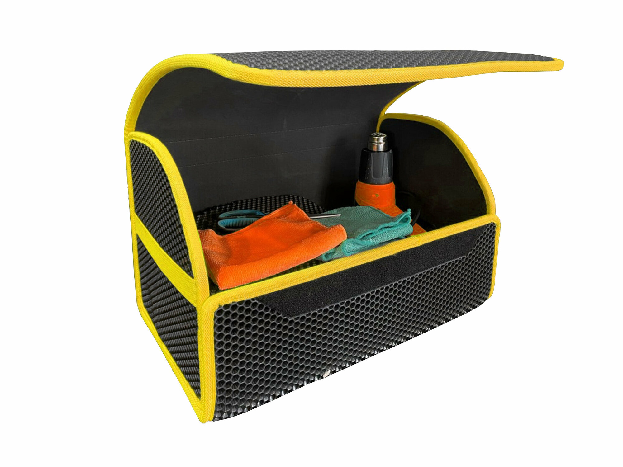 Купить Органайзер в багажник автомобиля для хранения вещей / Сумка органайзер из эва материала / Кейс в авто желтый кант