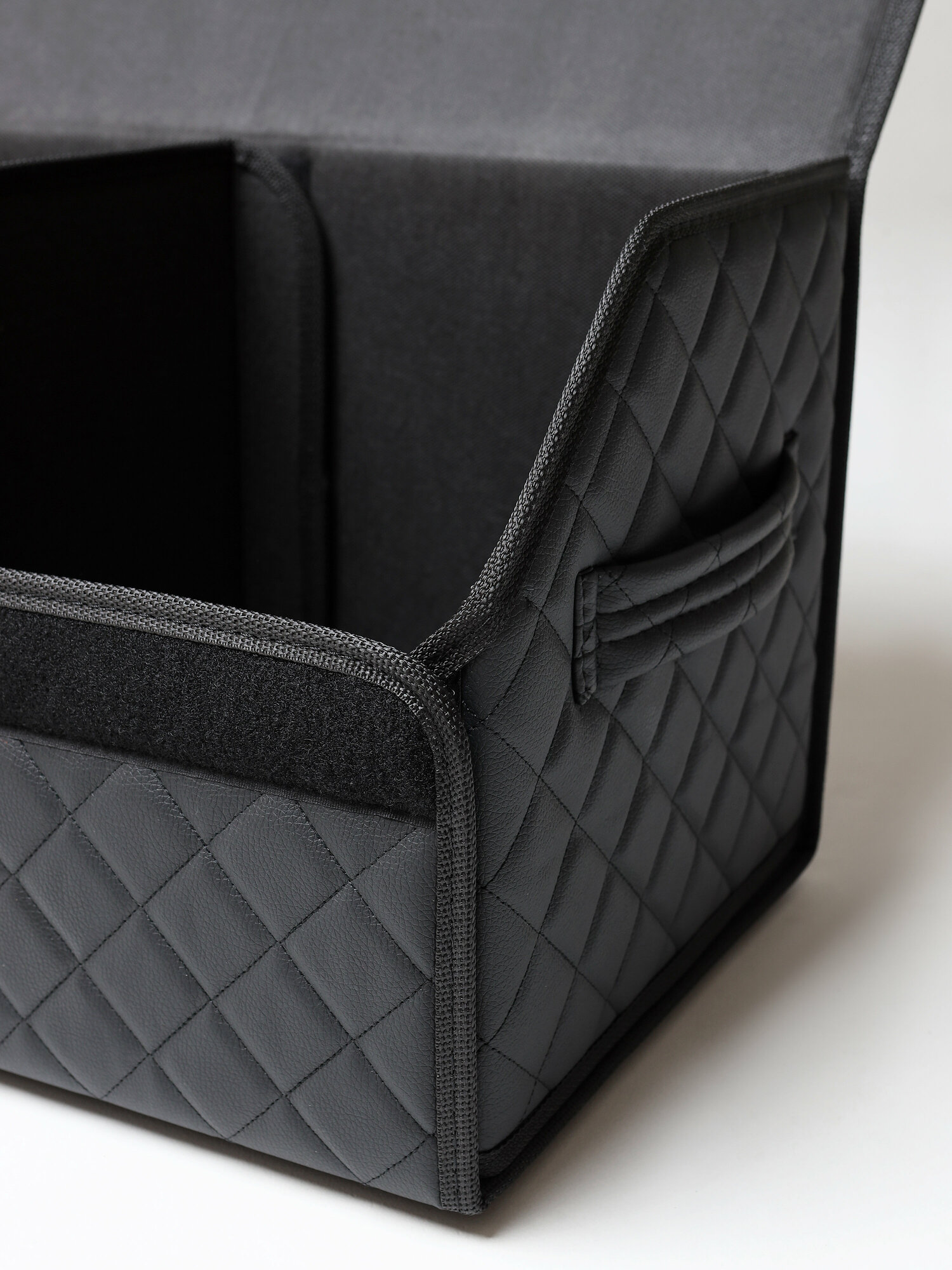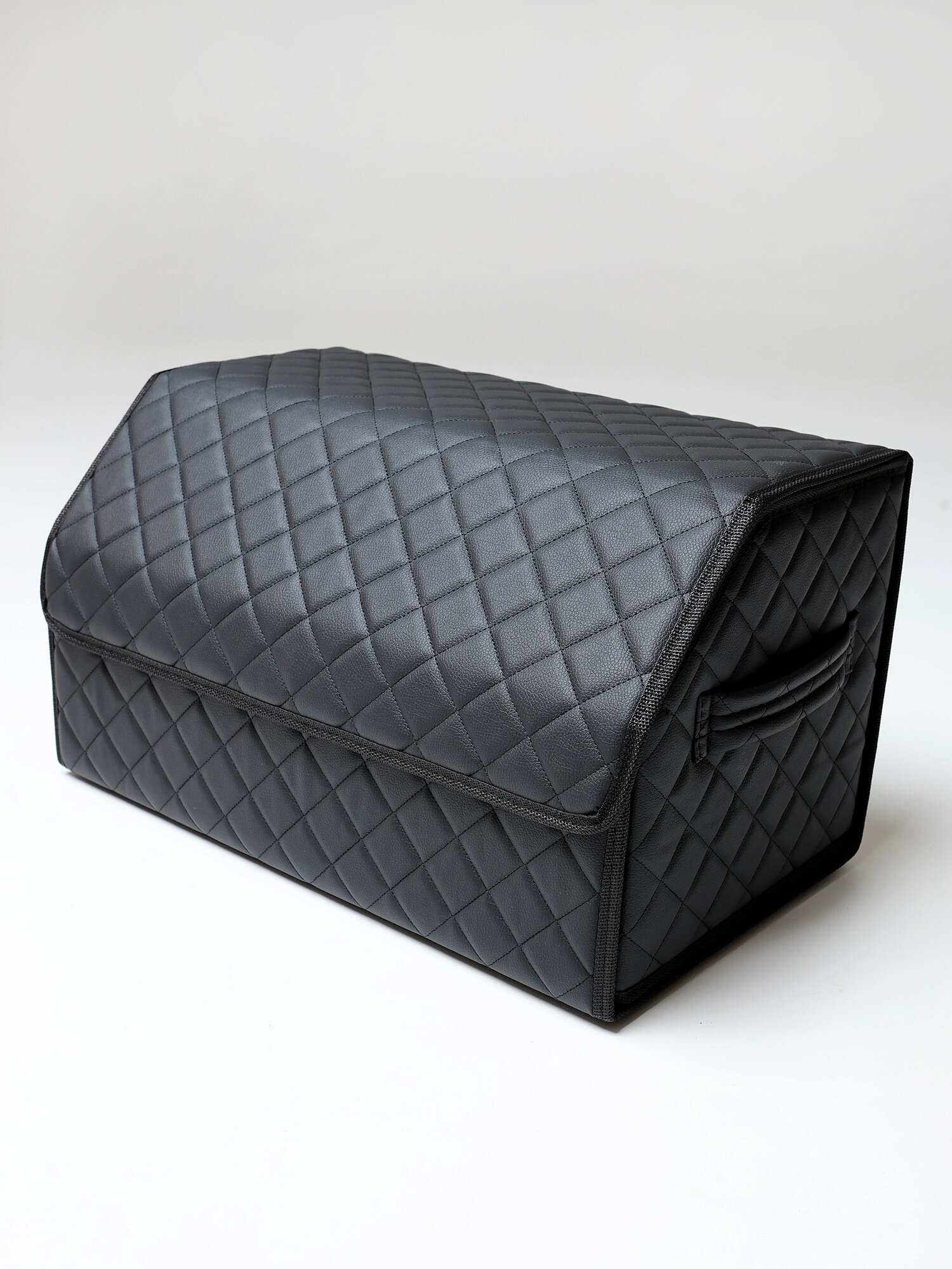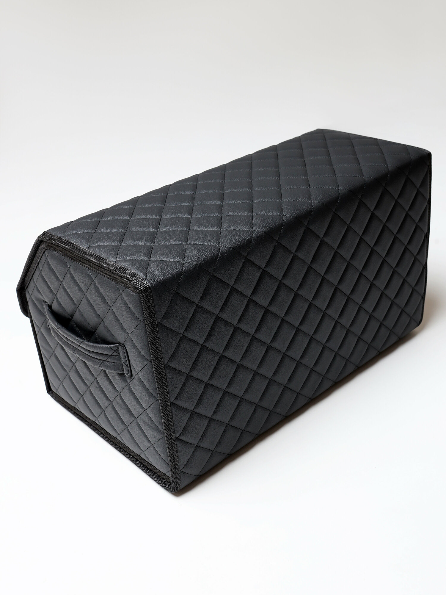 Саквояж в багажник автомобильный эко кожа черная синий ромб, объем 45 л