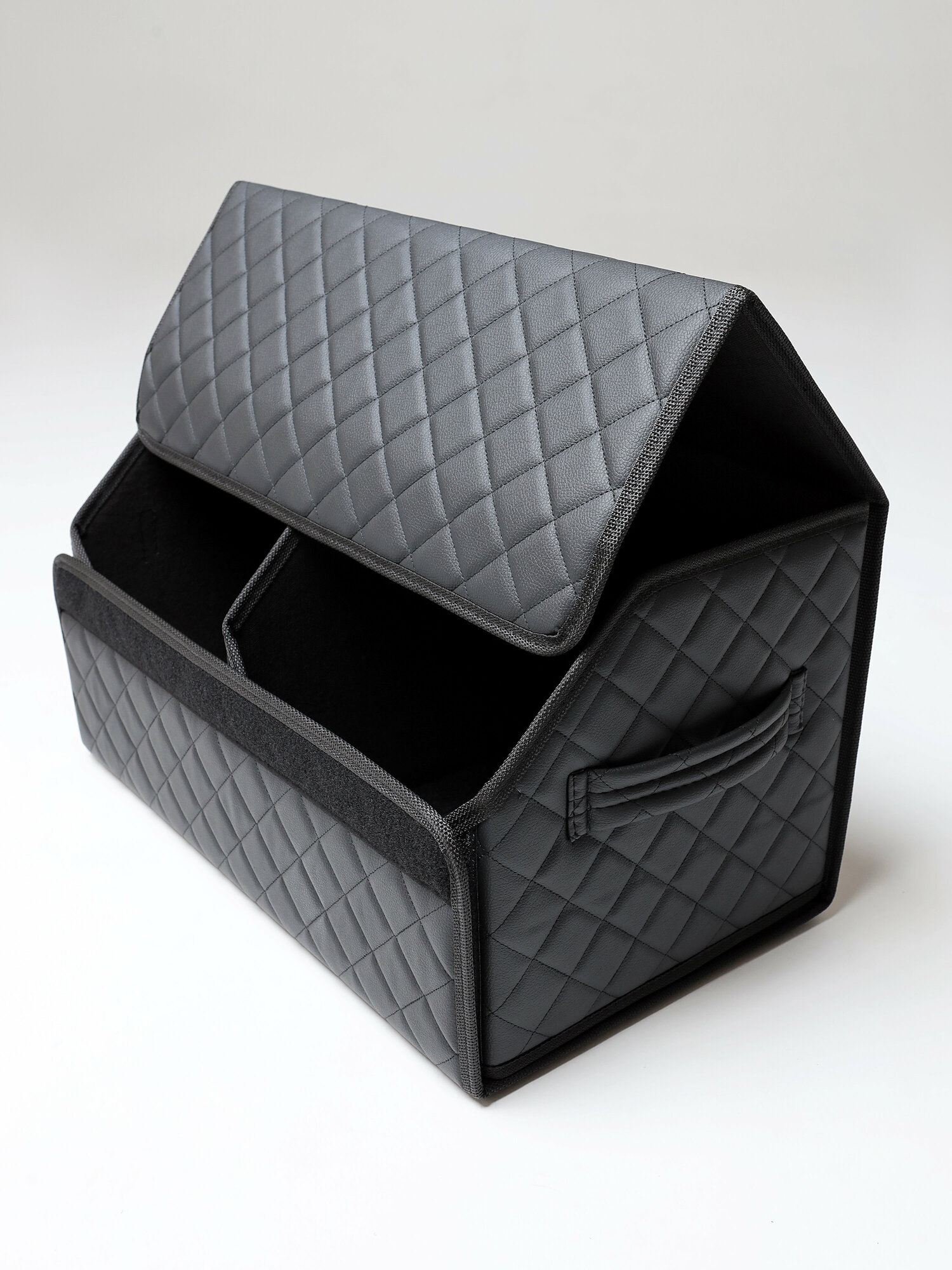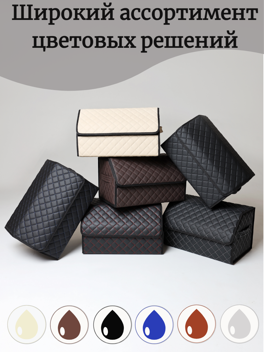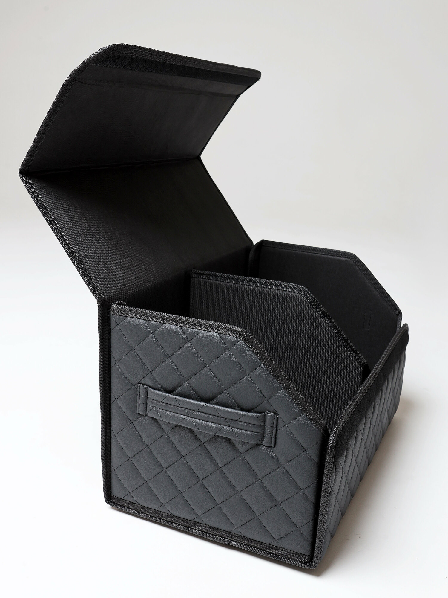 Саквояж в багажник автомобильный эко кожа черная синий ромб, объем 45 л