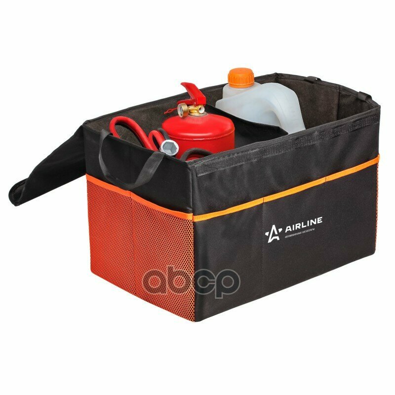 Купить Органайзер Большой В Багажник, С Крышкой, Жест.корпус (50*31*30 См), Черн./Оранж. AIRLINE арт. AOBT08