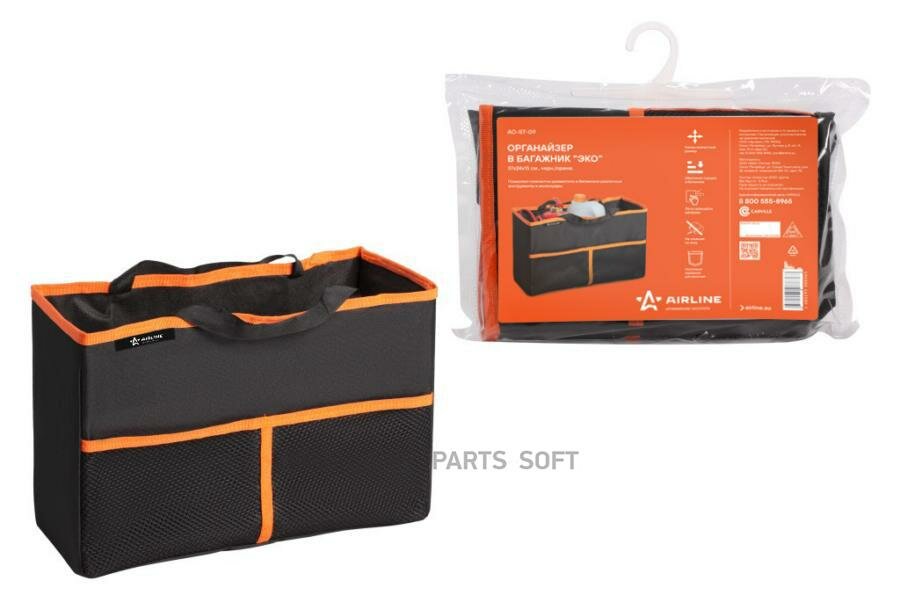 AIRLINE AO-ST-09 Органайзер в багажник "Эко" (37*24*15 см), черн./оранж. интересное: