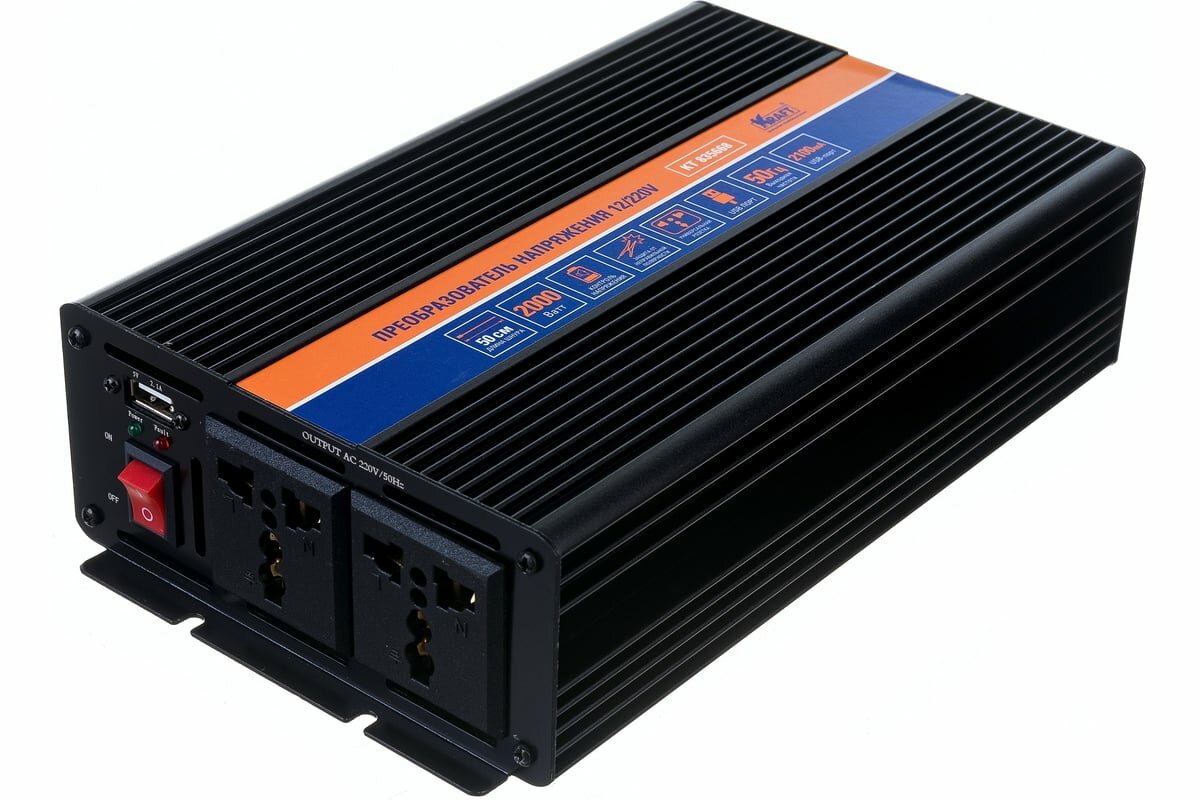 Автомобильный инвертор KRAFT 12/220 В, 2000 Вт KT 835668