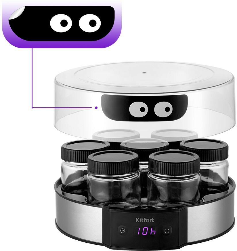 Йогуртница Kitfort КТ-6295 20Вт 7б. 190мл упр.:электрон. серебристый/черный интересное: