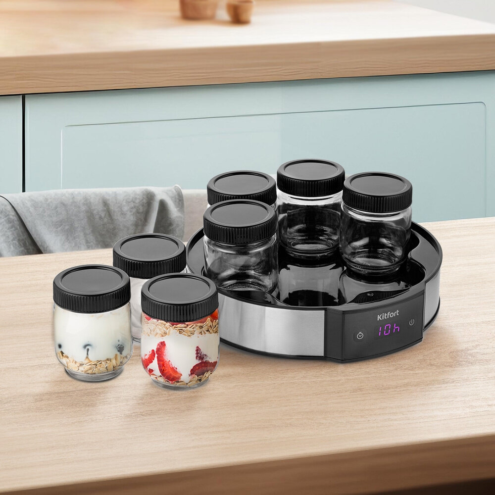 Купить Йогуртница Kitfort КТ-6295 20Вт 7б. 190мл упр.:электрон. серебристый/черный